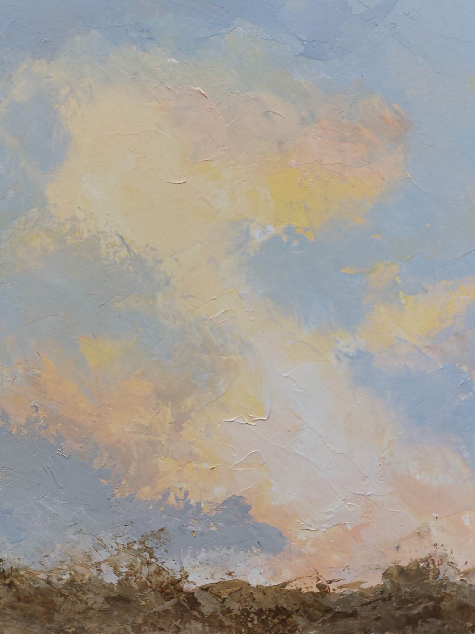 De natuur. Het land, het groen, het water en de lucht. En vogels soms. Expressief, bijna abstract, maar altijd herkenbaar. Helder, eenvoudig en krachtig.