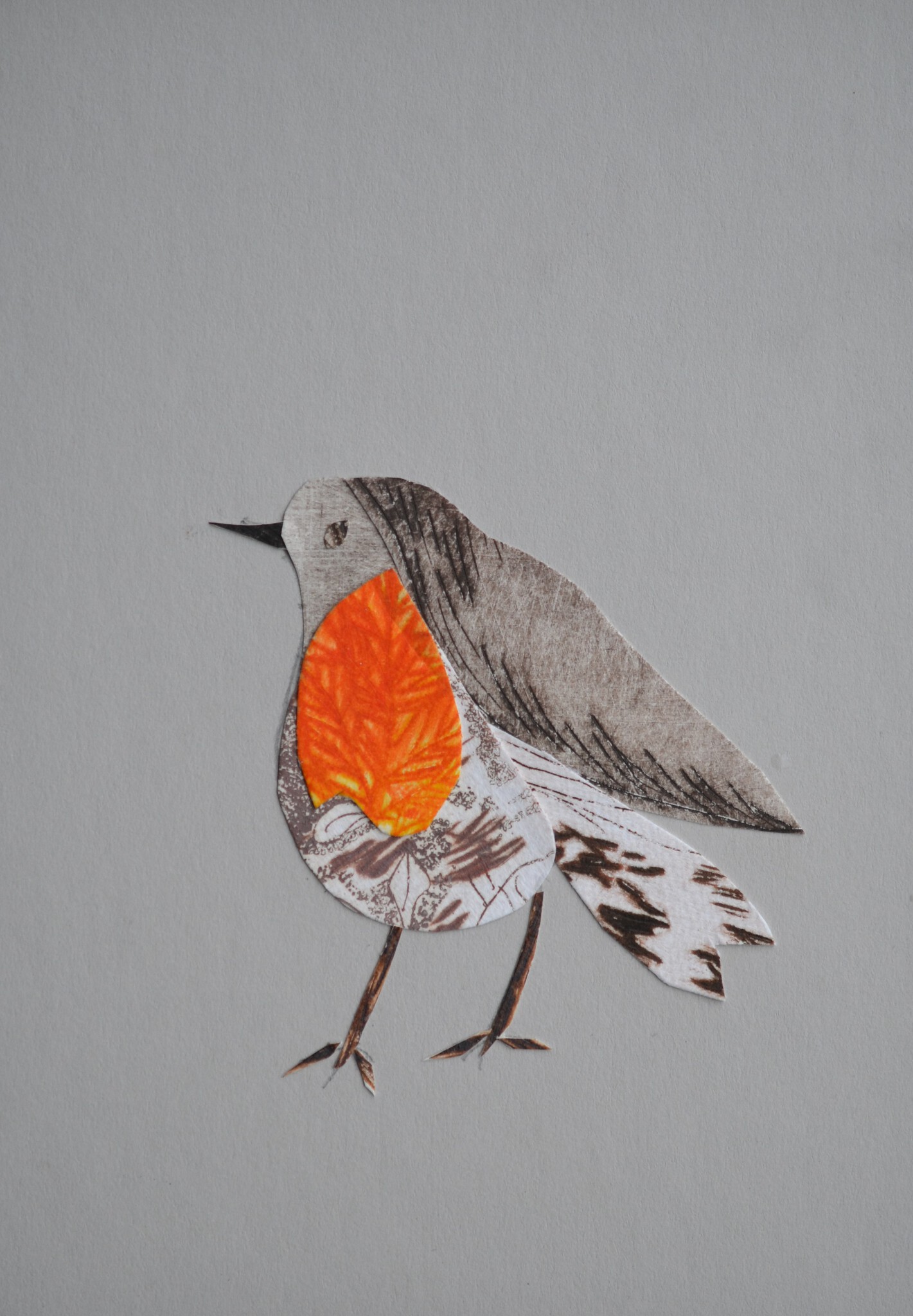 Oiseau E / Vogel E / Bird E - collage van verknipte drukken van mijn vroegere etsen - collage réalisé avec mes anciens gravures découpées - collage made from my earlier prints - edition 1/1