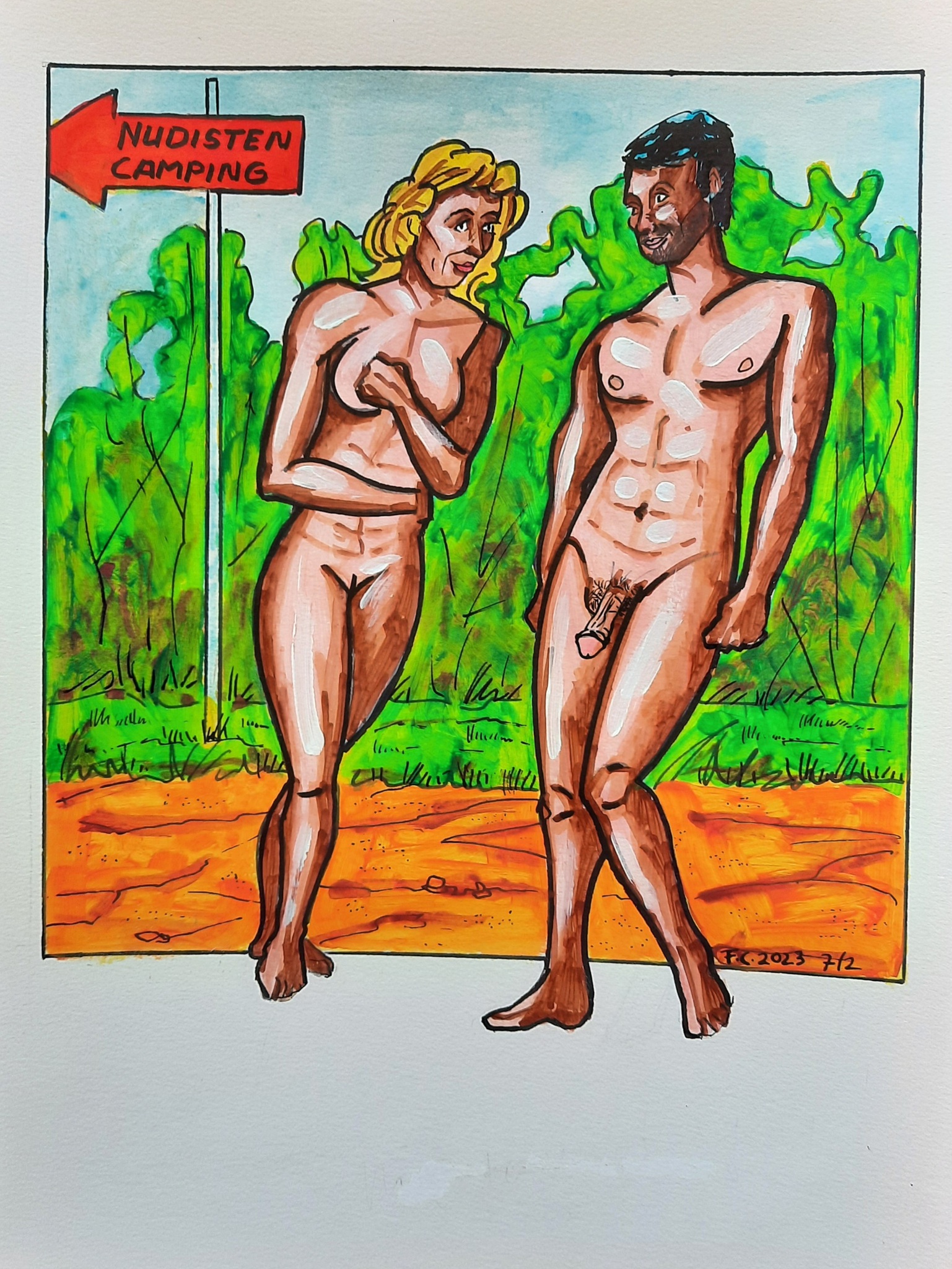Vrouw Portret Man Naakt Model Natuur Camping Ontmoeting Nudisten