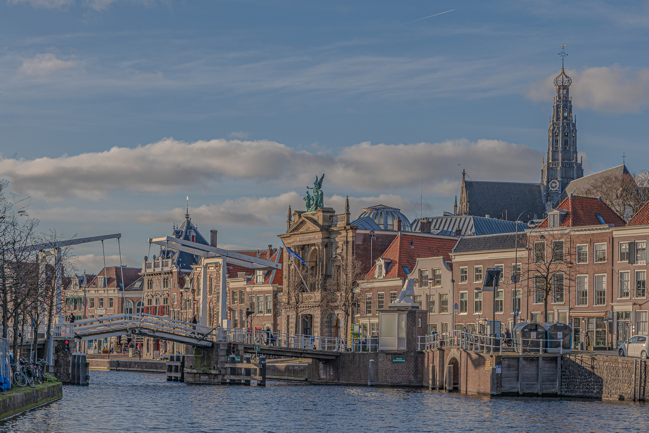 Mooi stadsgezicht van de Spaarne en het Tyler museum