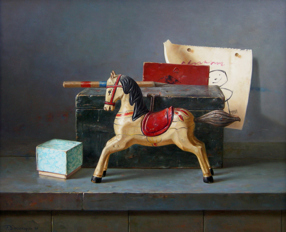 Schilderij Speelgoed Tekening Paneel Stilleven Paard Horse Kist Houten Erik Papieren Wooden Doosje 2006 Stillife Toy Hobbelpaard