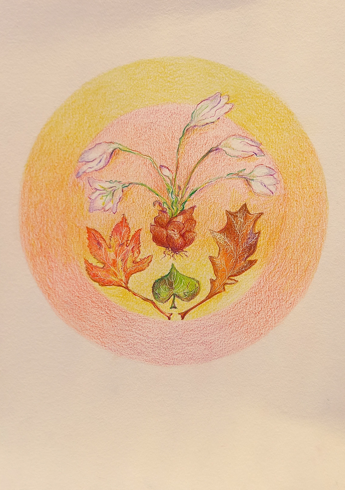 Mandala: Warme herfst met vallend blad en herfsttijloos