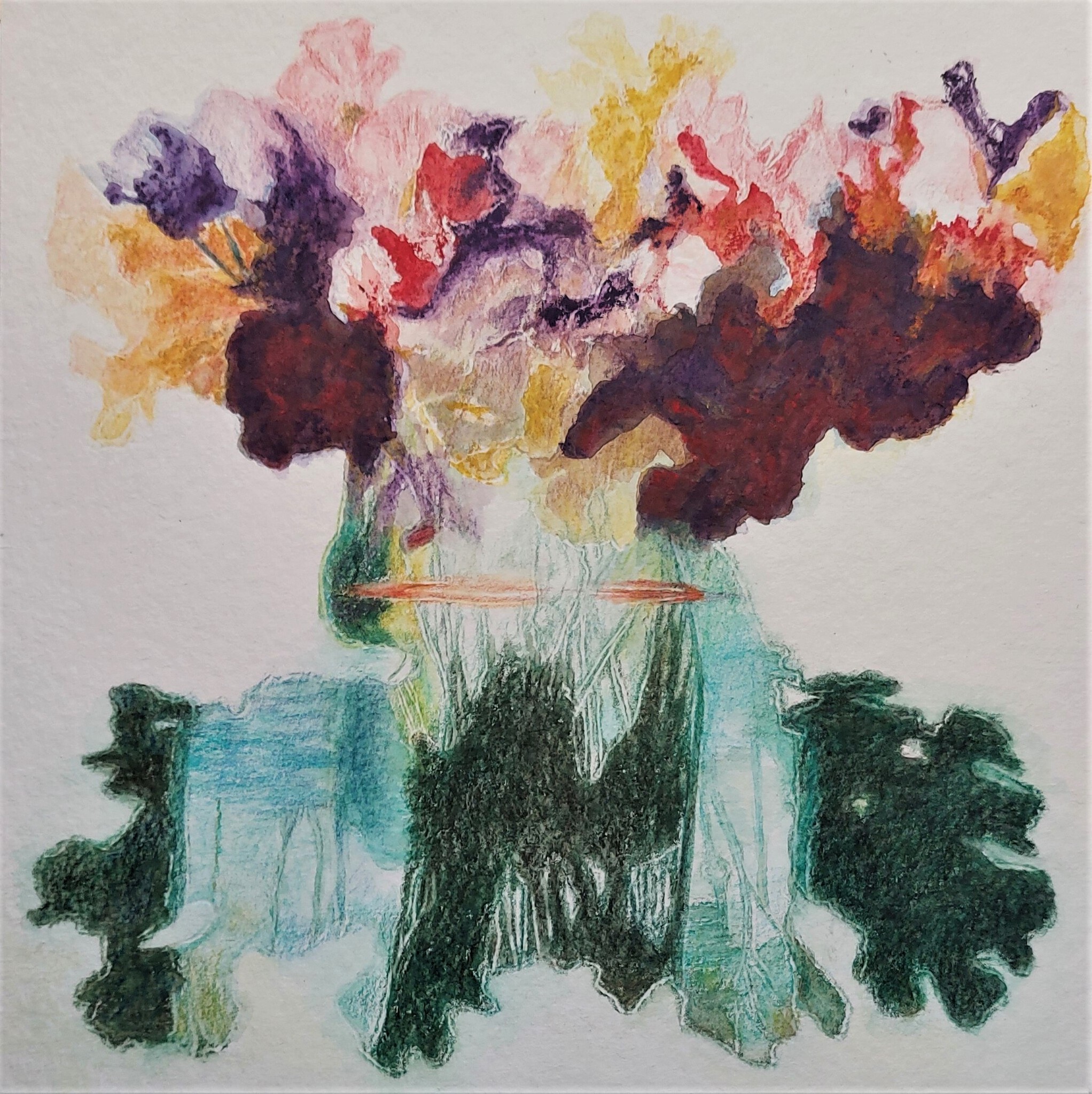 Oranje Geel Paars Groen Papier Bloem Roze Aquarelpotlood Schaduw Lathyrus