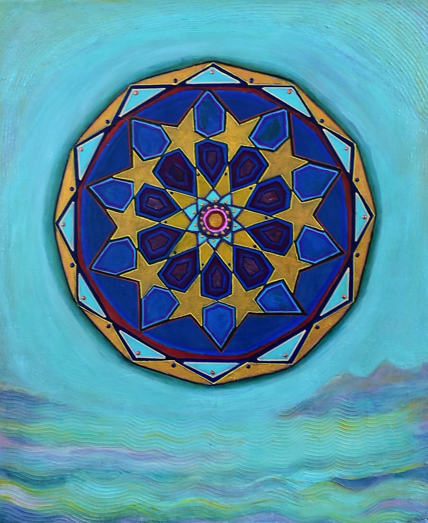 Meditatieve, symbolische kunst en bijzondere mandala's. Verrassende, kleurrijke tekeningen en schilderijen in acryl en zandpasta.