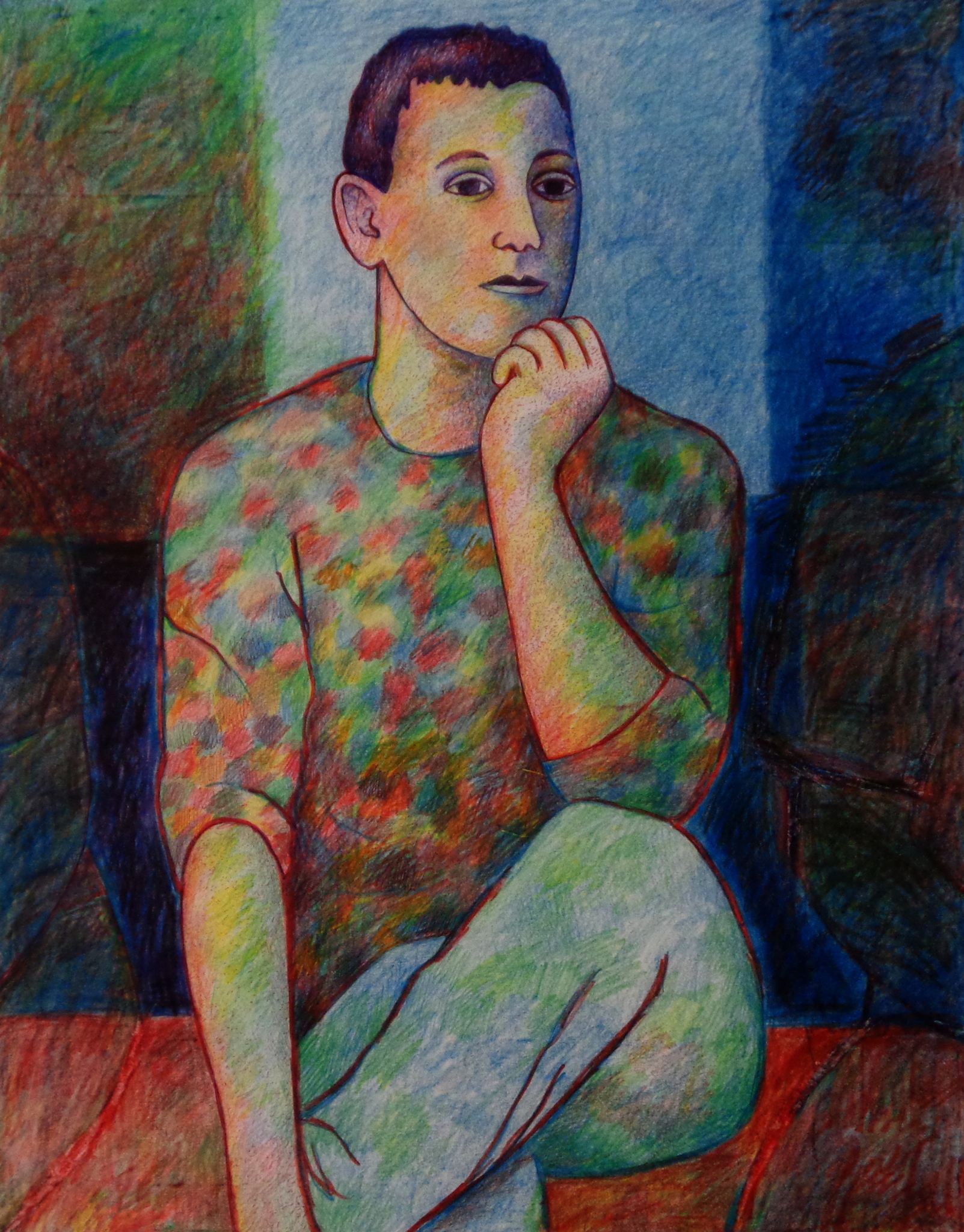 Werkt voornamelijk met Acrylverf, potlood en inkt. Is autodidakt.