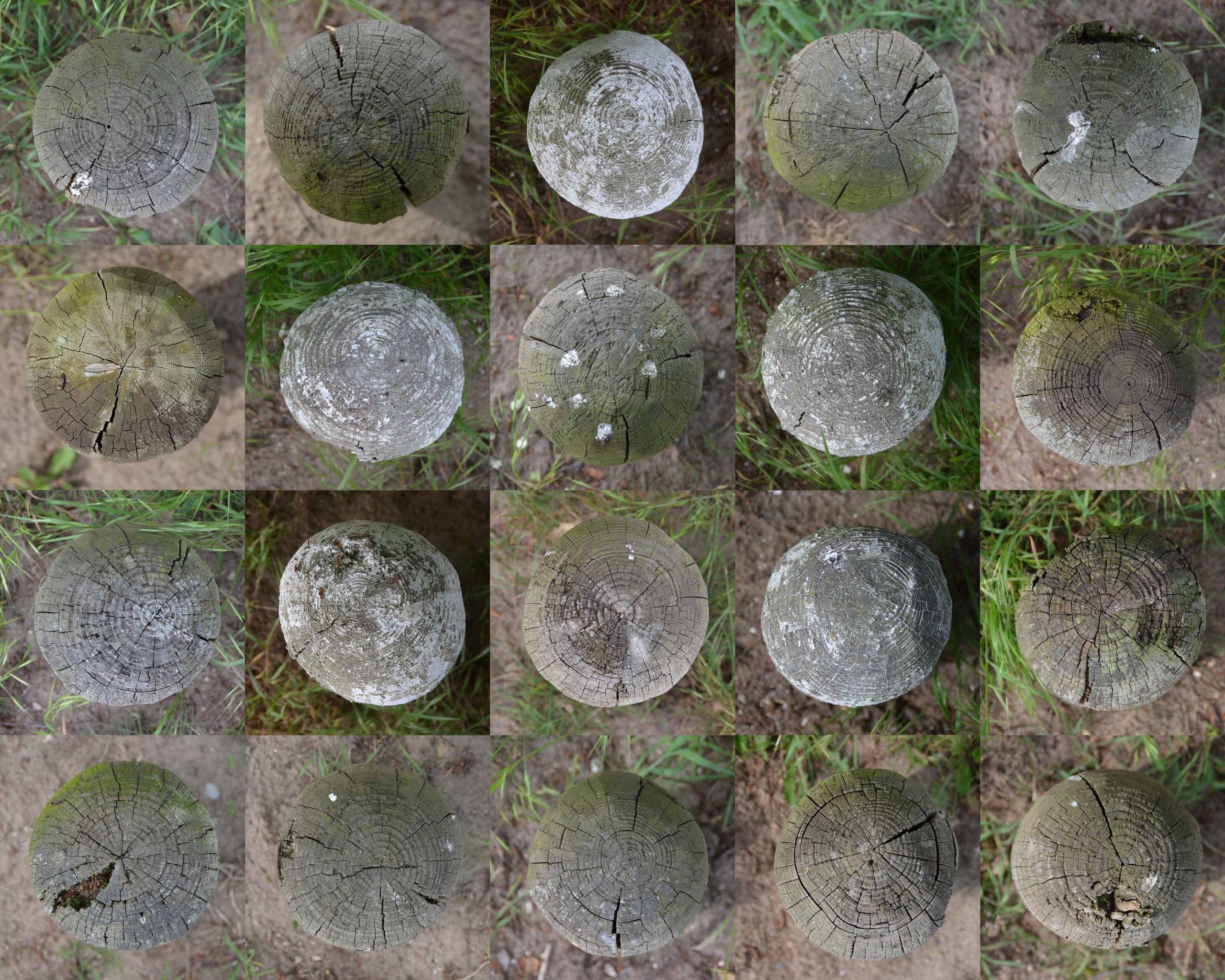 Deze collage is een variatie op het thema 'hoekpalen in boerenlandschap'. Deze paaltjes kom je tegen langs fietspaden en zandwegen rondom Deventer.