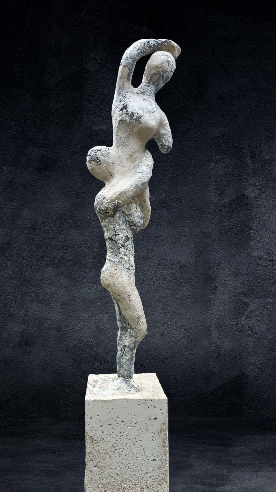 Moved, lifted higher Moved, my soul's on fire Moved, by a higher love I surrender all control to the desire that consumes me... - Depeche Mode - Higher love - Beeld gemaakt van diverse soorten klei op een sokkel van gegoten beton.