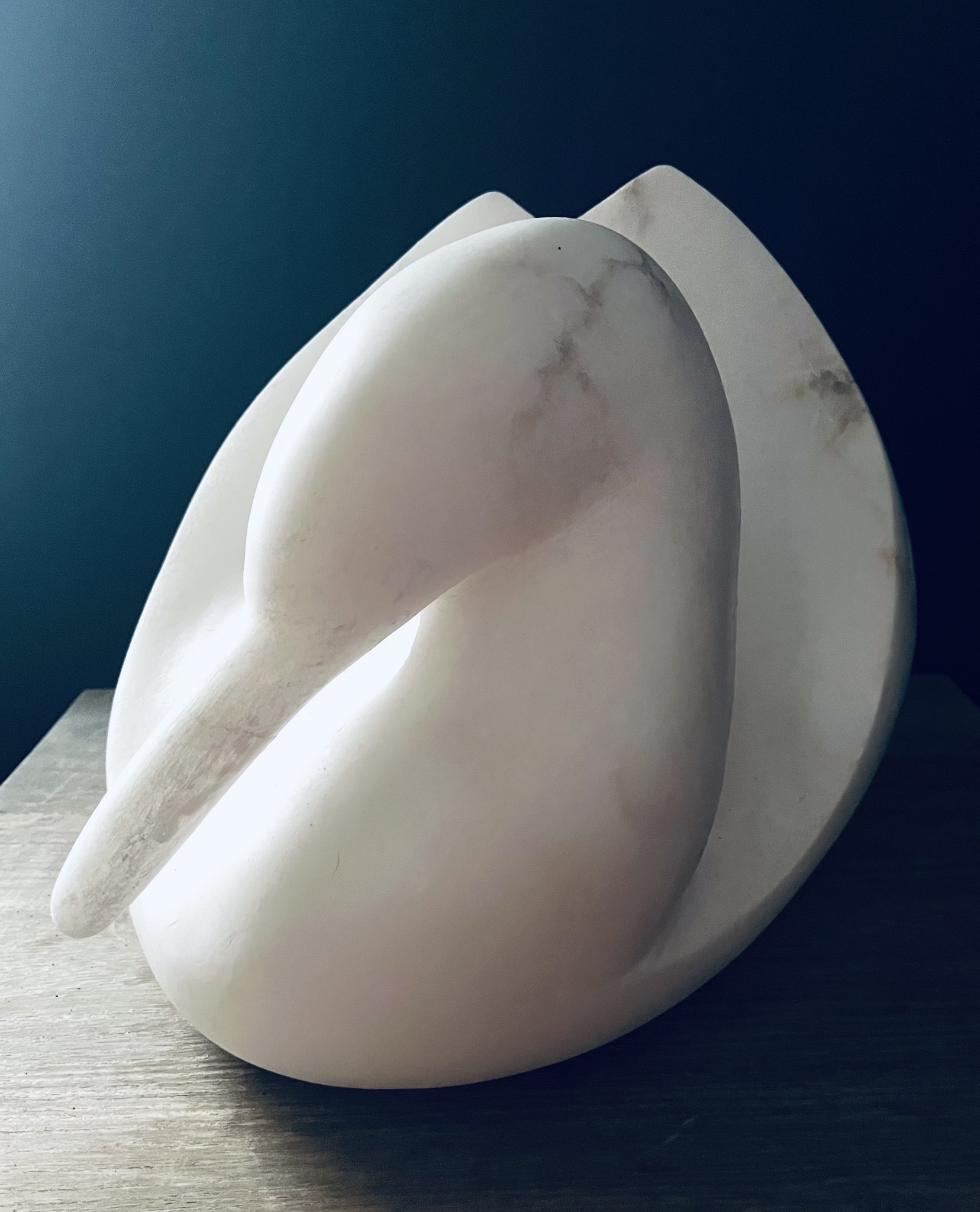 Mooie witte zwaan van wit albast.