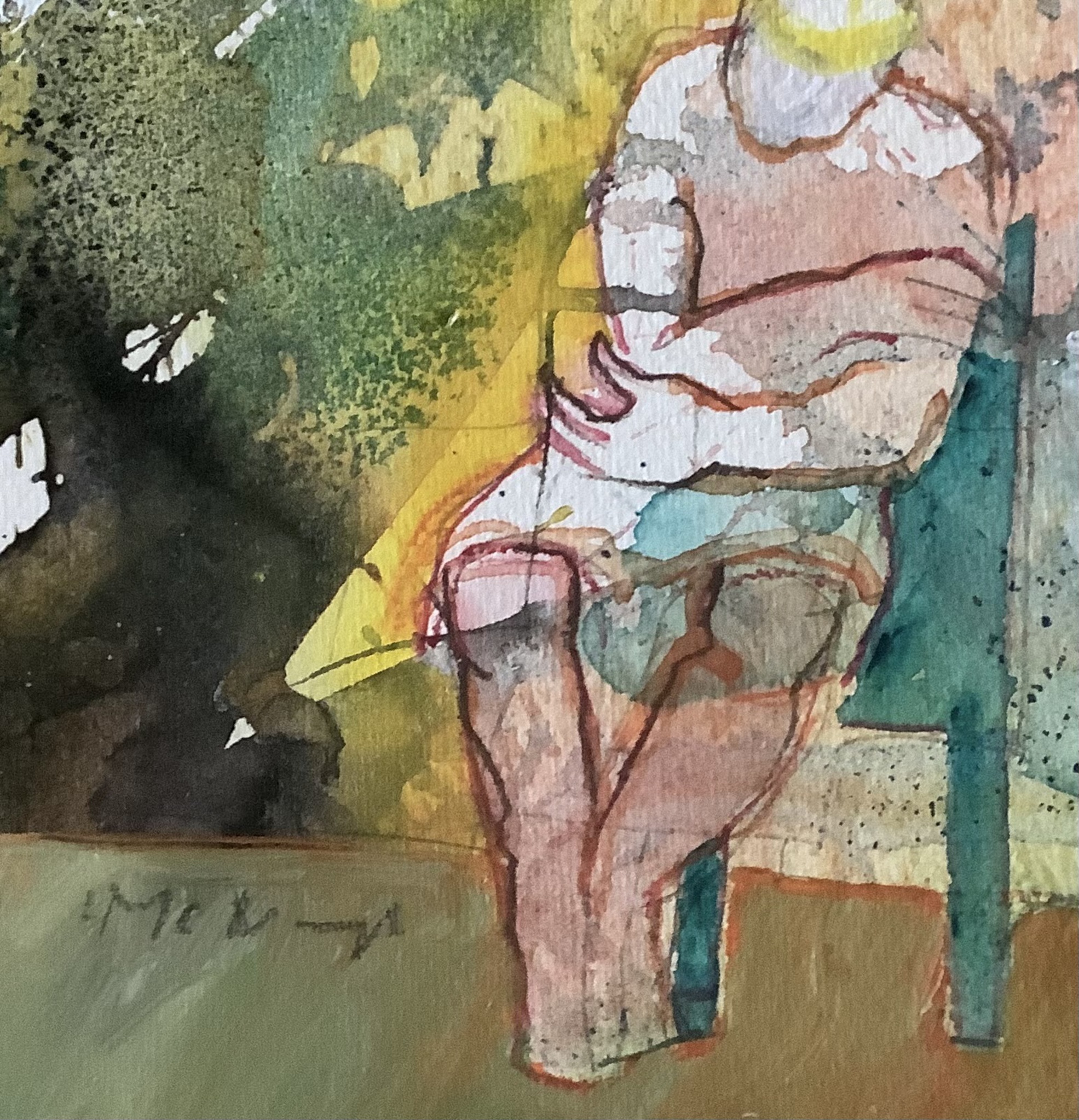 Een kleine aquarel van een zittende vrouw. Lijstmaat 25-25 . Voor inlijsten zie kunst als cadeau.