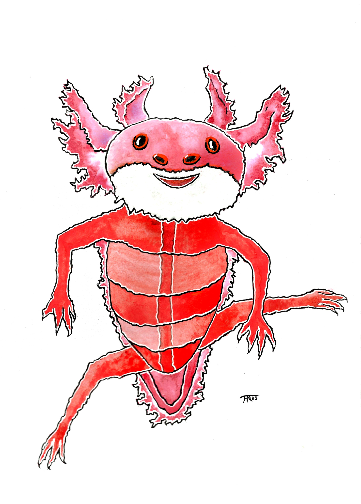 Dit aquarel schilderijtje van een grappige axolotl was leuk om te maken.