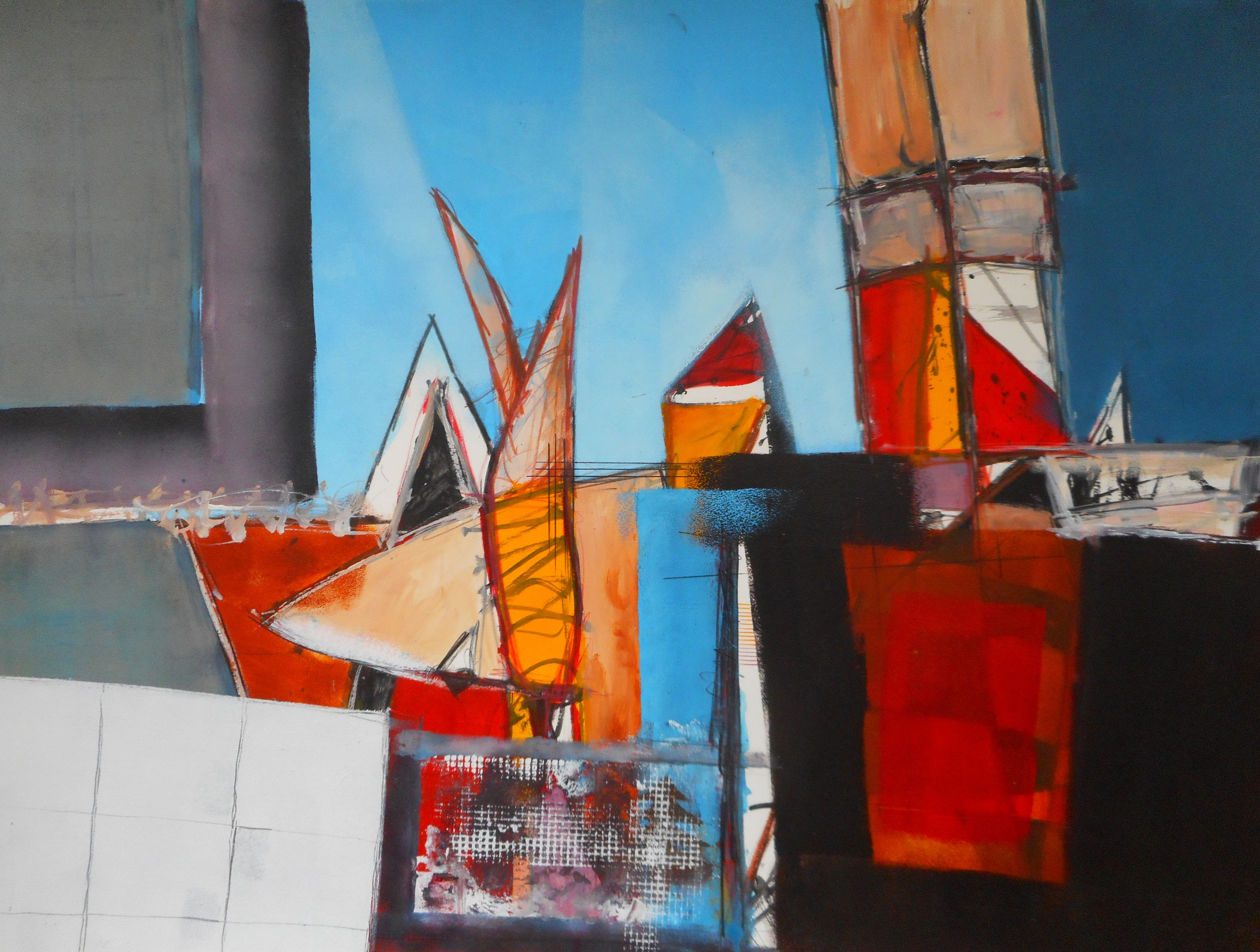 Na jarenlang bezig te zijn geweest met het maken van litho's ben ik overgestapt naar het schilderen omdat mijn manier van werken daar steeds meer om vroeg. Ik hou er van om zonder een specifiek uitgangspunt te beginnen en al werkend tot het uiteindelijke resultaat te komen. En alle technieken te gebruiken die er maar nodig zijn om dat resultaat te bereiken. Inspiratie haal ik uit de natuur,gebeurtenissen om mij heen en de muziek die ik altijd onder mijn werk aan hebt staan.