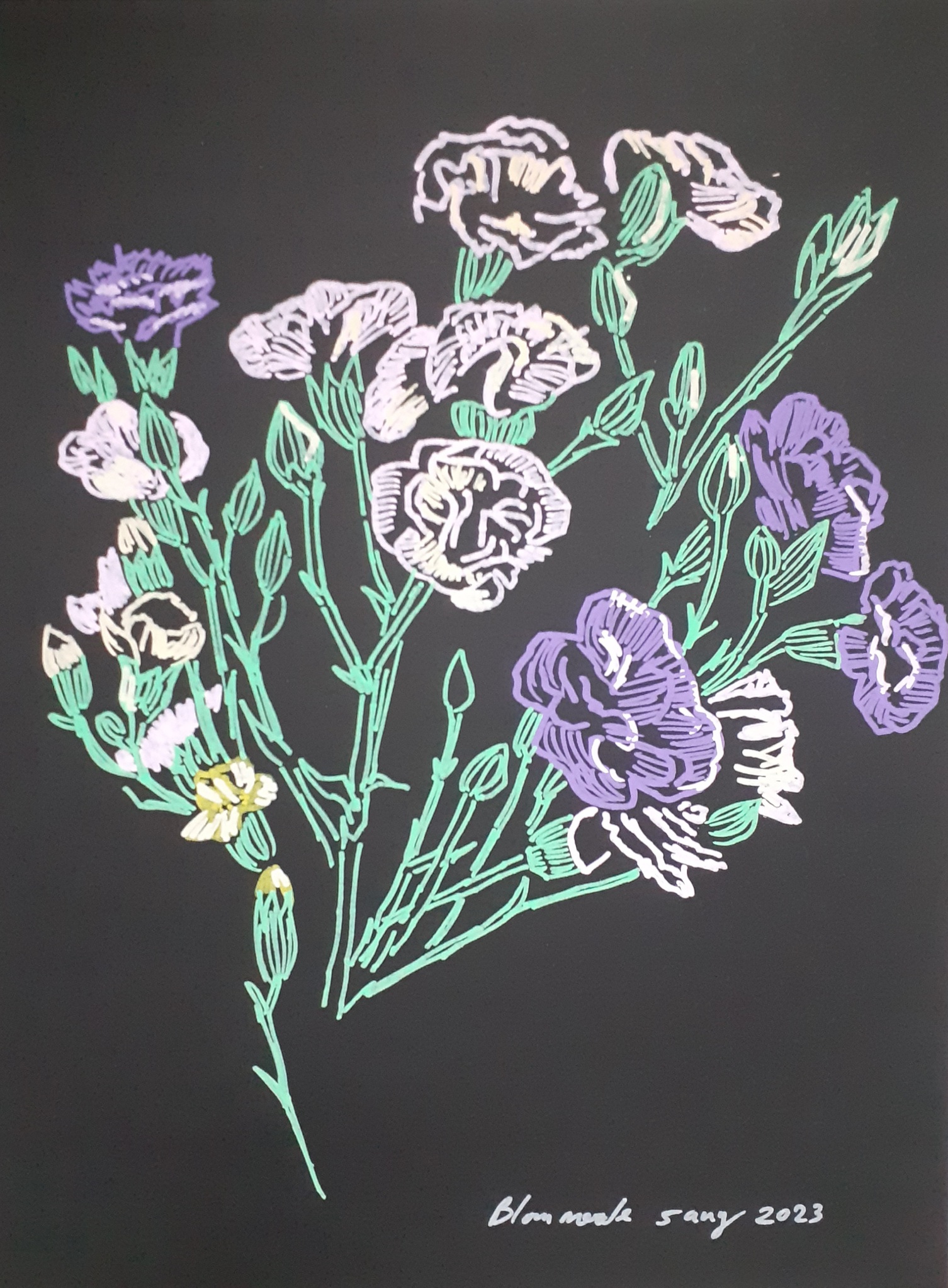 Realistisch Figuratief Bloem Anjer Paintmarker Zwart Papier Aquarel Tekening