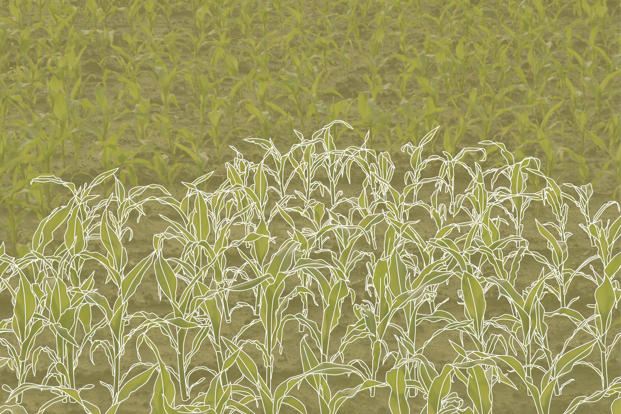 In mijn eerdere werk probeerde ik de grote lijnen in het landschap te pakken door middel van fotocollages. In deze digitale tekening zoom ik in. Ik pak een hoekje van het landschap en registreer. Dit is het tweede deel van het vierluik 'Alom Mais', getiteld 'Frisgroen mais'.