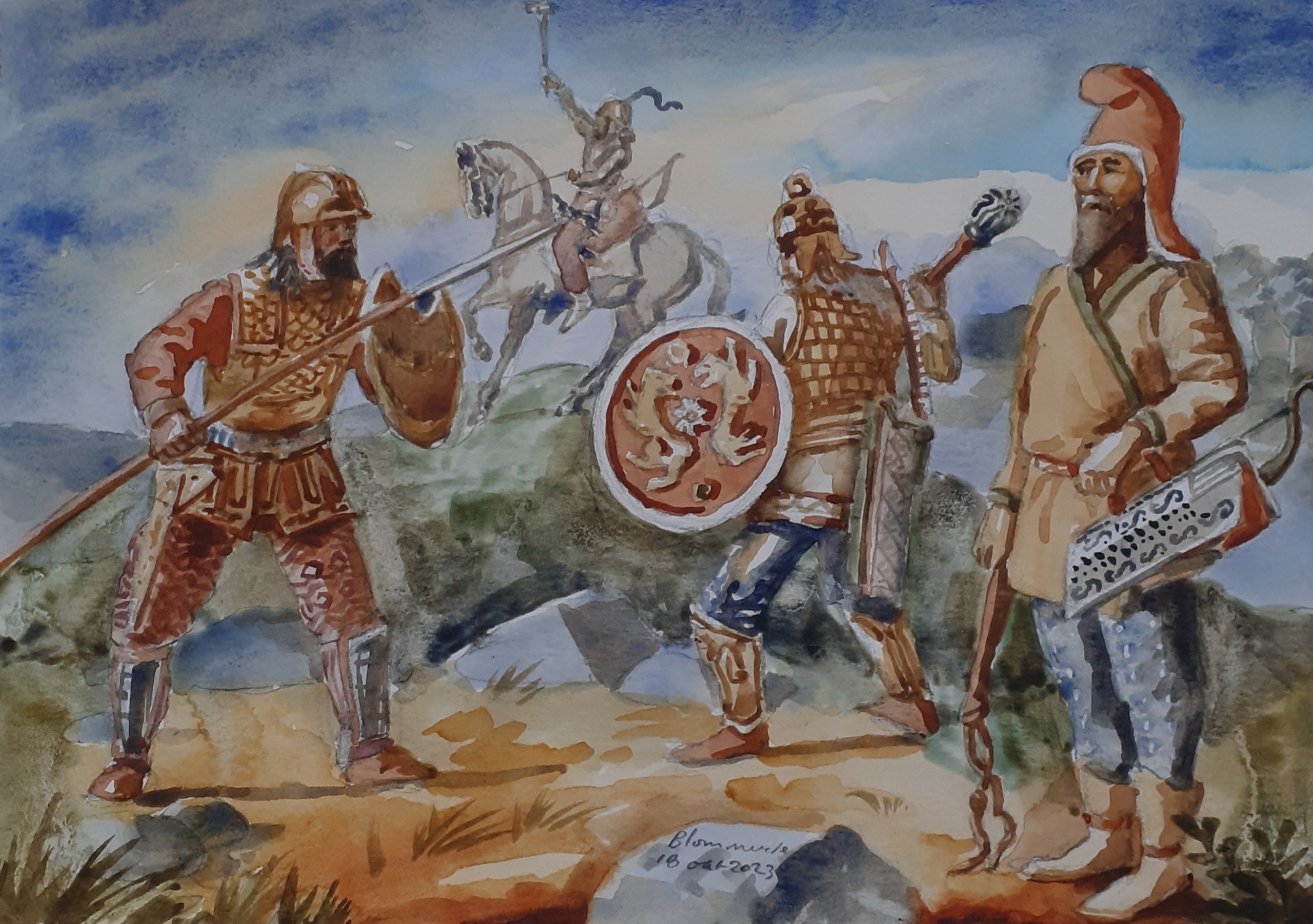 Figuratief Realistisch Aquarel Scythen Krijger Geschiedenis