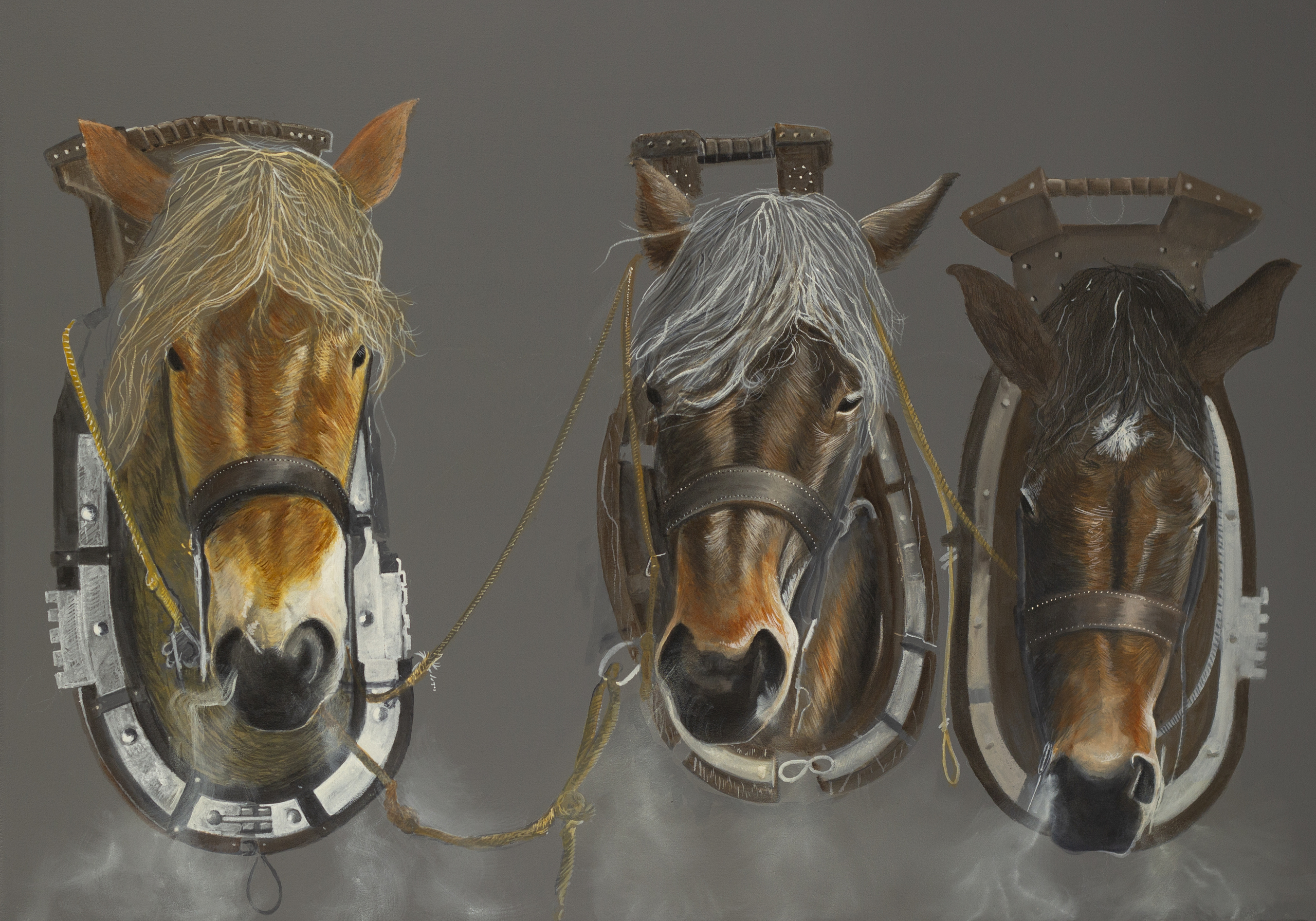 Een portret van een driespan, geschilderd met olieverf op linnen.