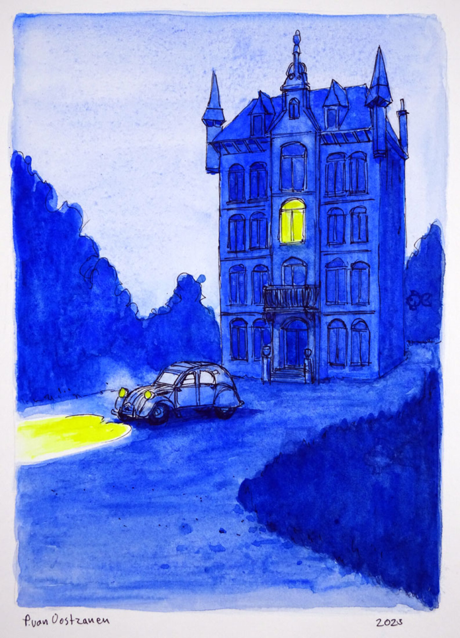 2cv Citroën Citroen Nacht Night Chateau Kasteel Blauw Licht