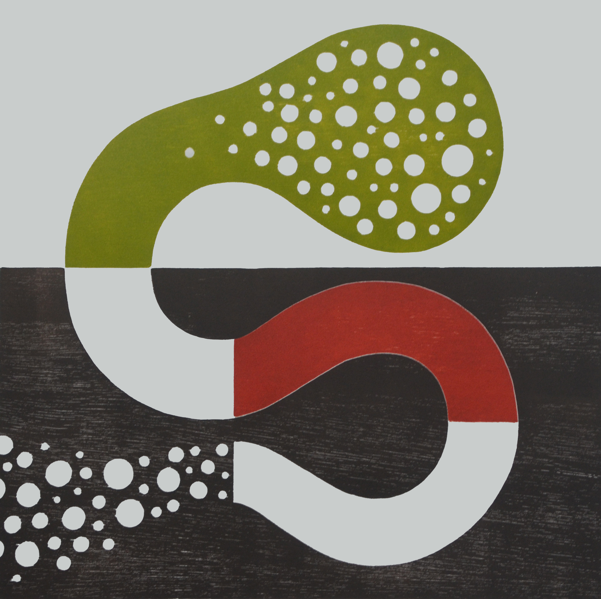 Houtdruk - sjabloondruk op papier, 3 kleuren, oplage 3.
