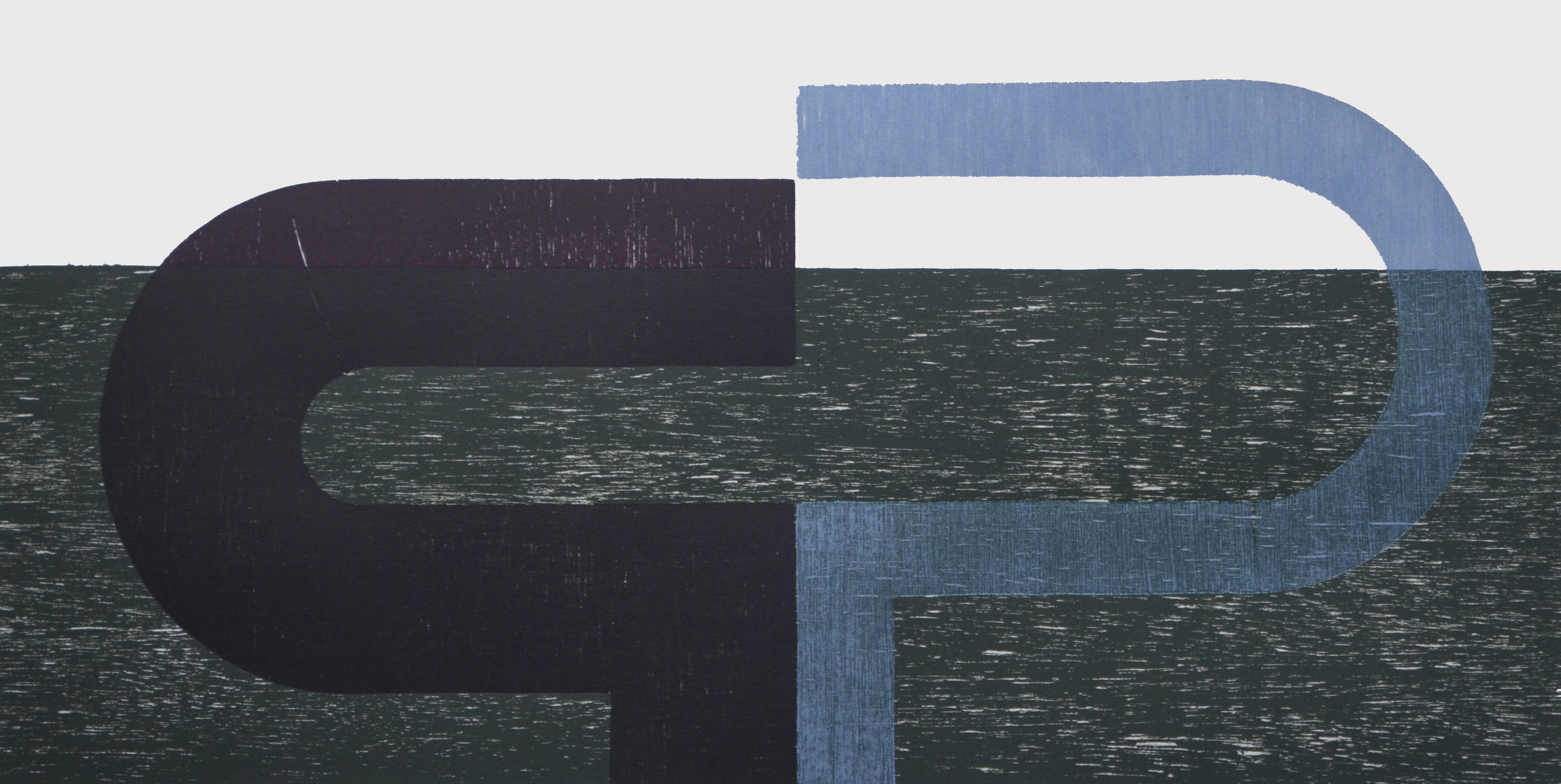Houtdruk - sjabloondruk op papier, 3 kleuren, oplage 3.