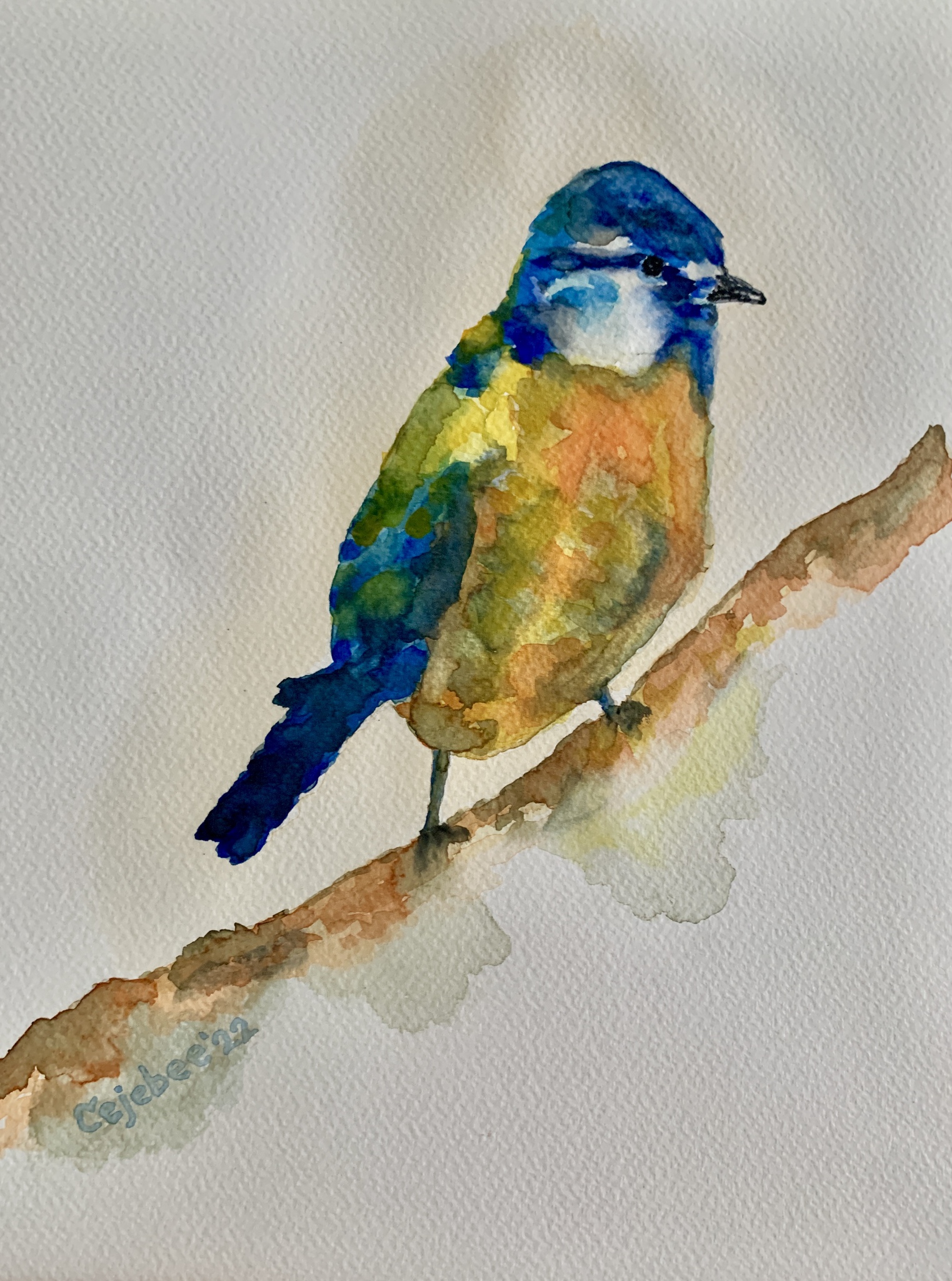 Ik blijk niet meer te houden. Nu een pimpelmees, een aquarel.
