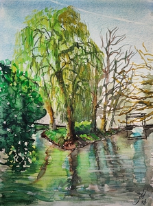 Ik schilder vrijwel elke woensdag "en pleinair" met de groep Pictura Gelria. Daarnaast maak ik ook af en toe werk binnenshuis in mijn kleine atelier.