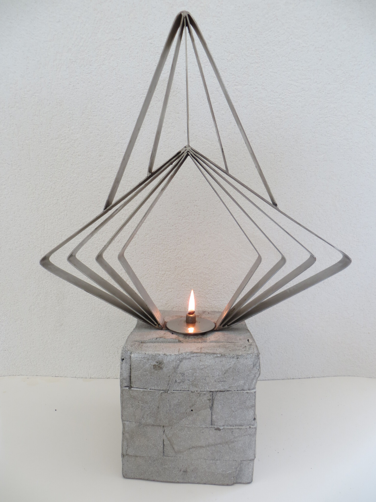 de oliebrander is met een rvs kunstwerkje verfraaid.
