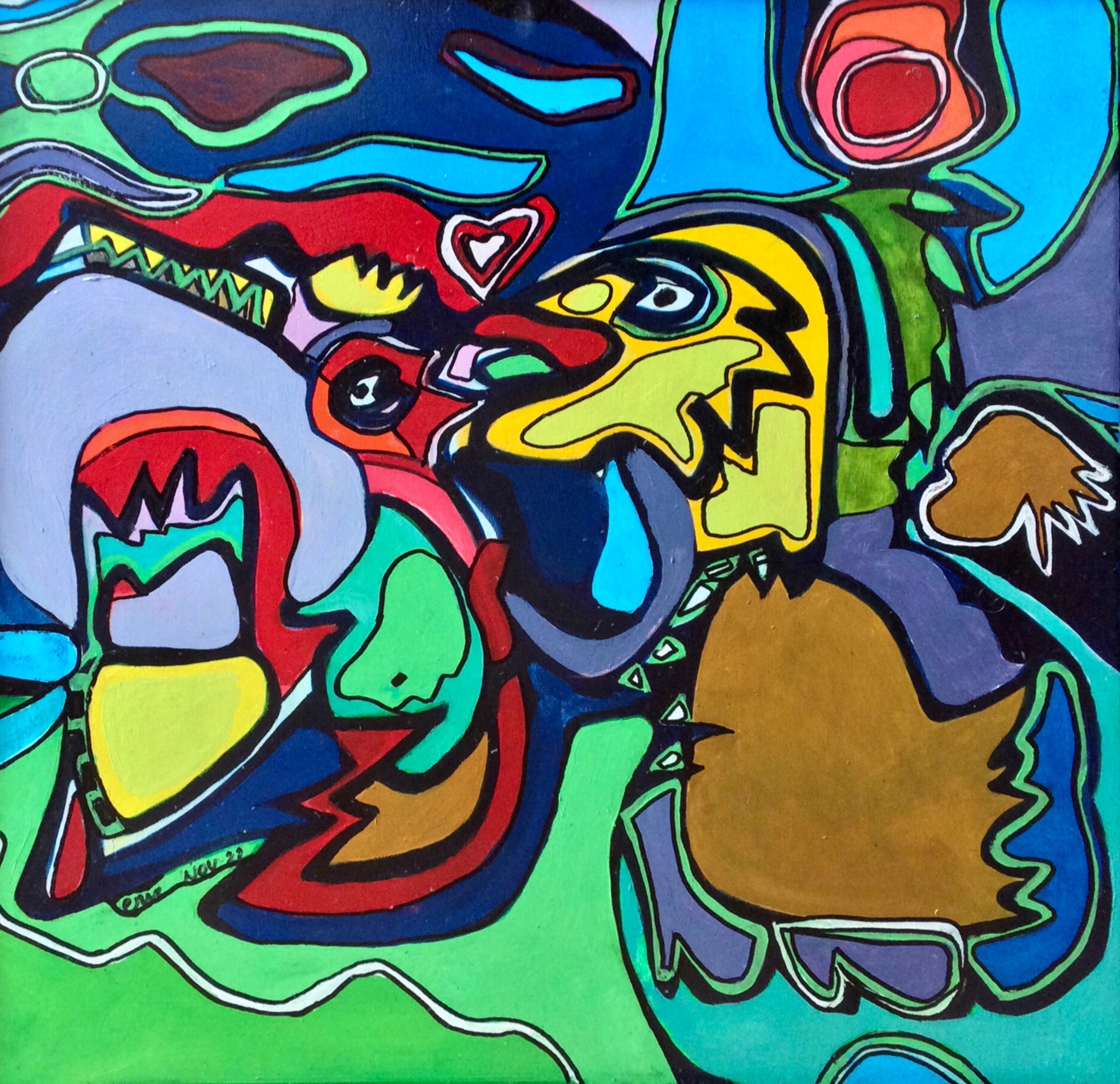 In de periode 1970-2000 ben ik, met grote pauzes, gaan schilderen waarbij fantasie en inspiratie in (on)herkenbare thema’s en figuratieve/abstracte stijl zijn verwerkt. Sinds 2021 heb ik het penseel met veel energie weer opgepakt.