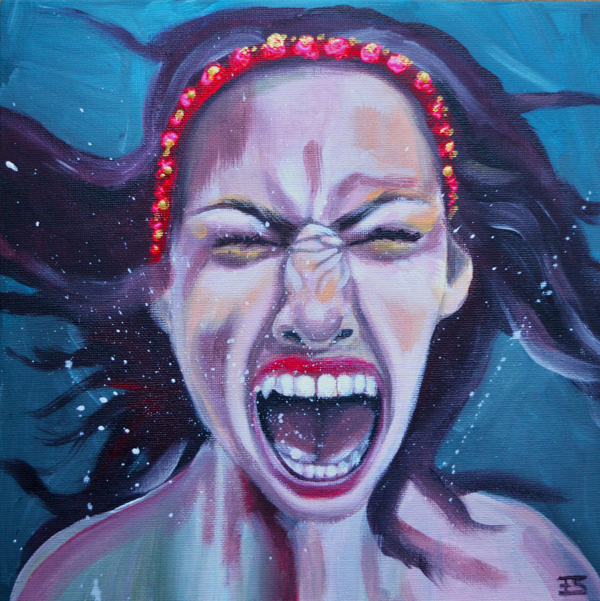 Door de woede te voelen kan schreeuwen opluchting geven. Geschilderd op canvasboard