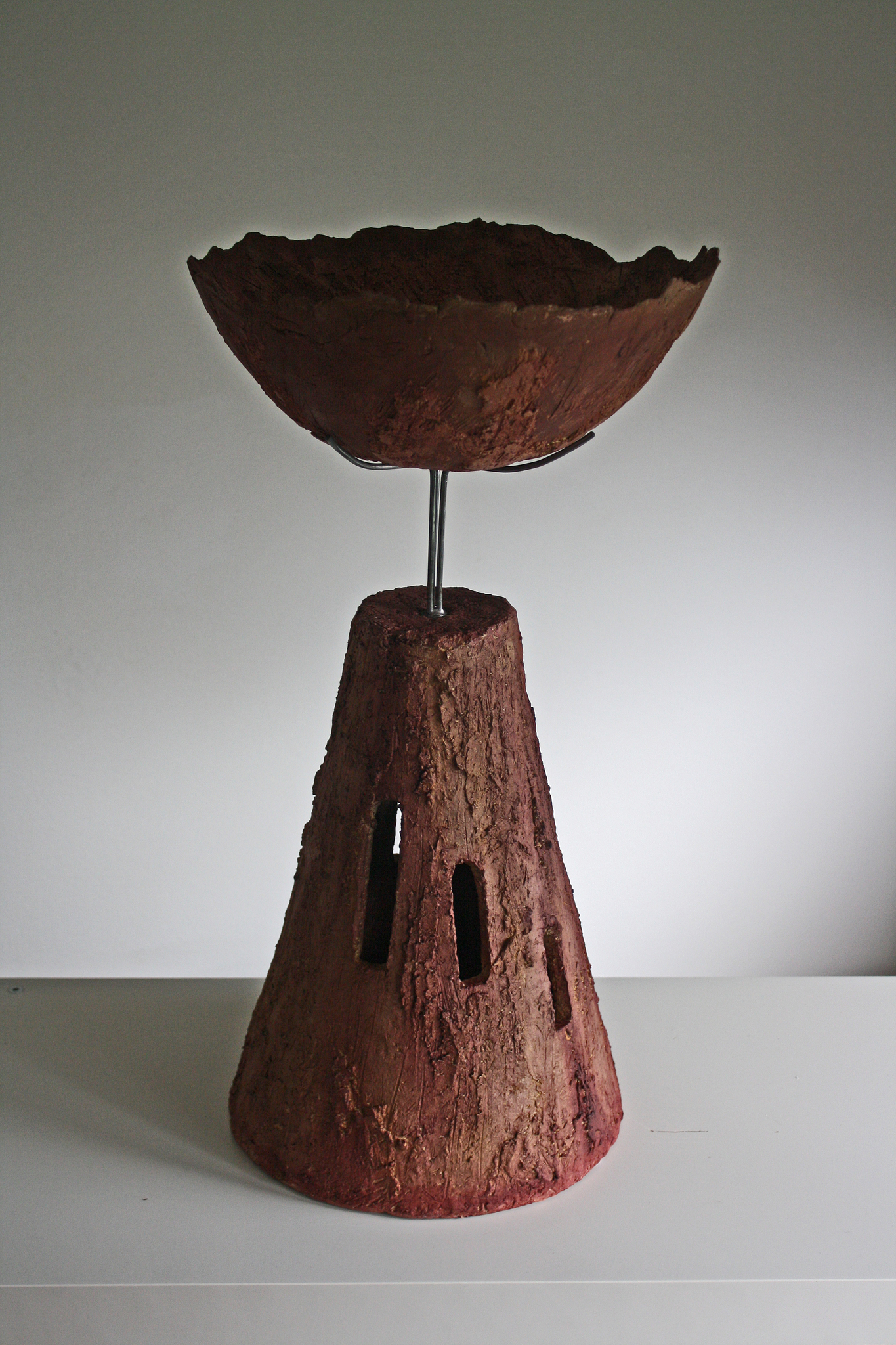 Klei, grof, gevormd, geduwd, geschraapt. Ruwe huid, schrale kleur en soms gecombineerd met metaal. Hiermee kan ik mijn ideeën en gedachten verbeelden. Mijn beeld vertelt, de kijker luistert.