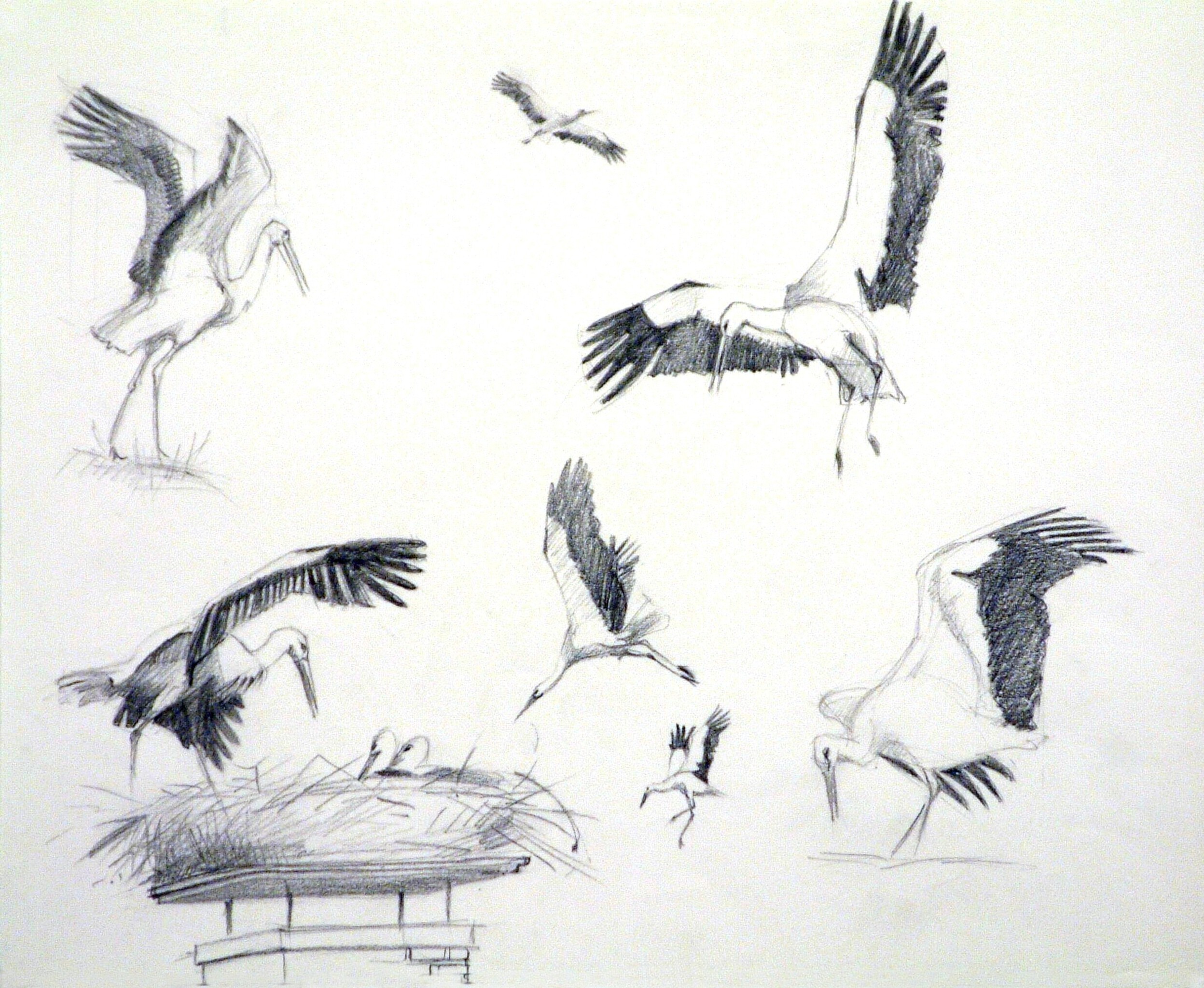 Ooievaar Studie Zwart Wit Potloodtekening Natuur Dier Stork Study Black And White Pencil Drawing Nature Animal