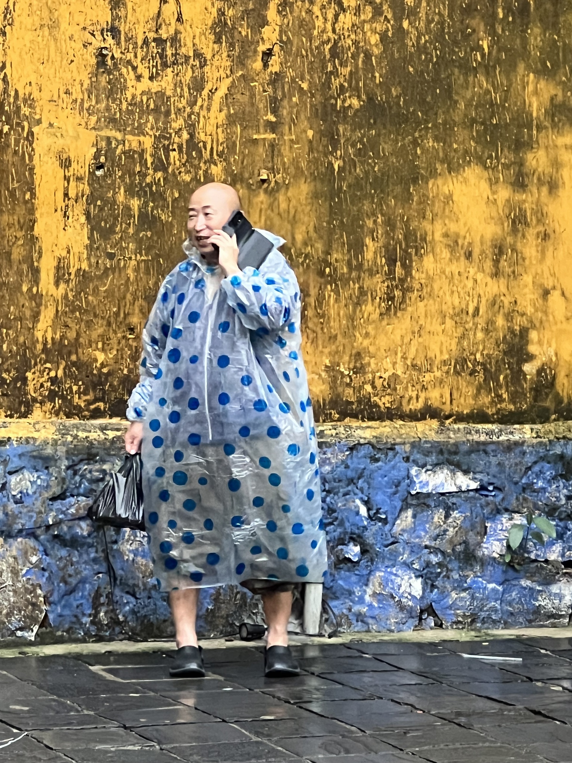 Regentijd in Hoi An, foto van een voorbijganger
