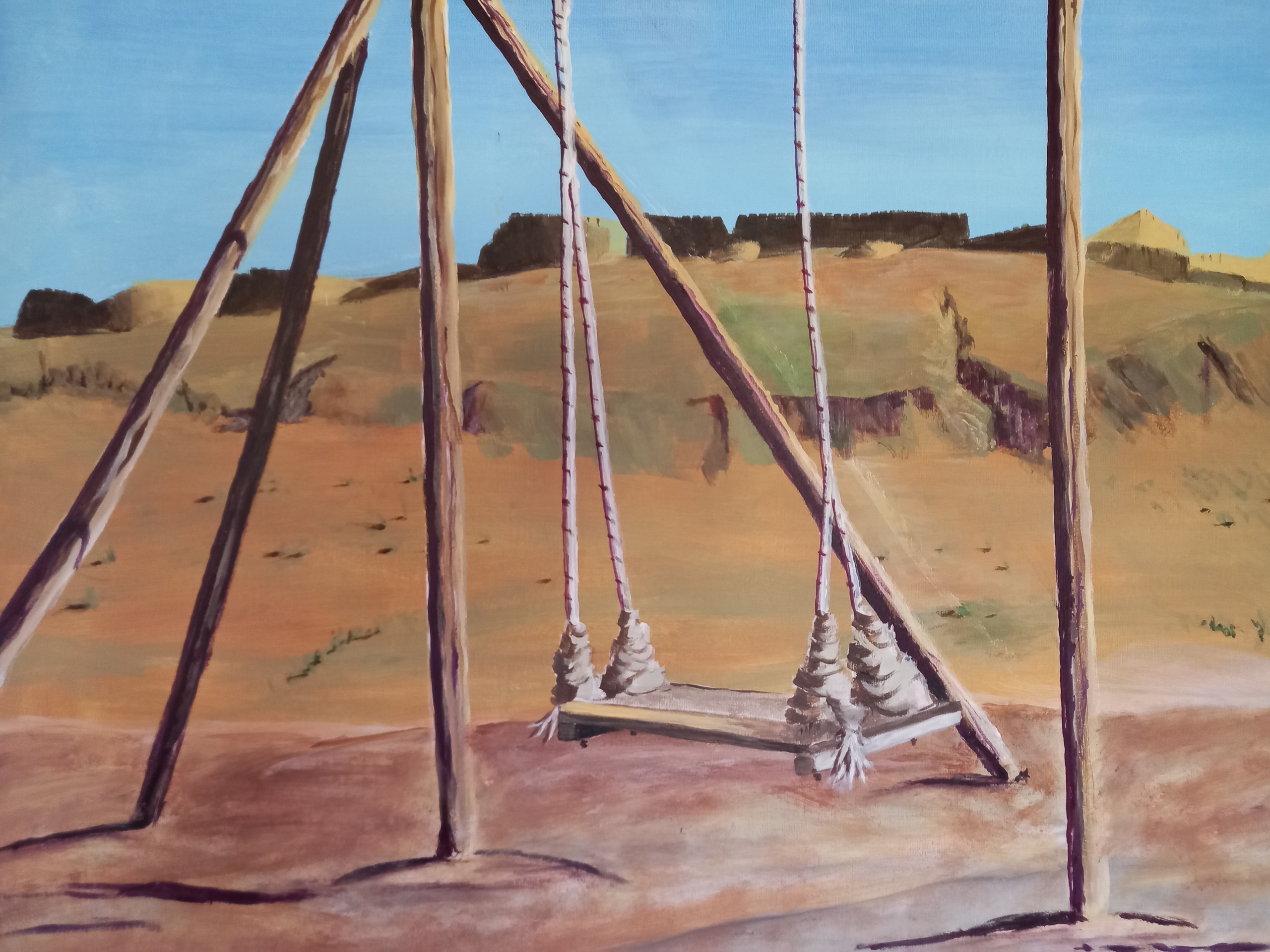 Schommel in yurt kamp bij Ayaz Kala, Oezbekistan