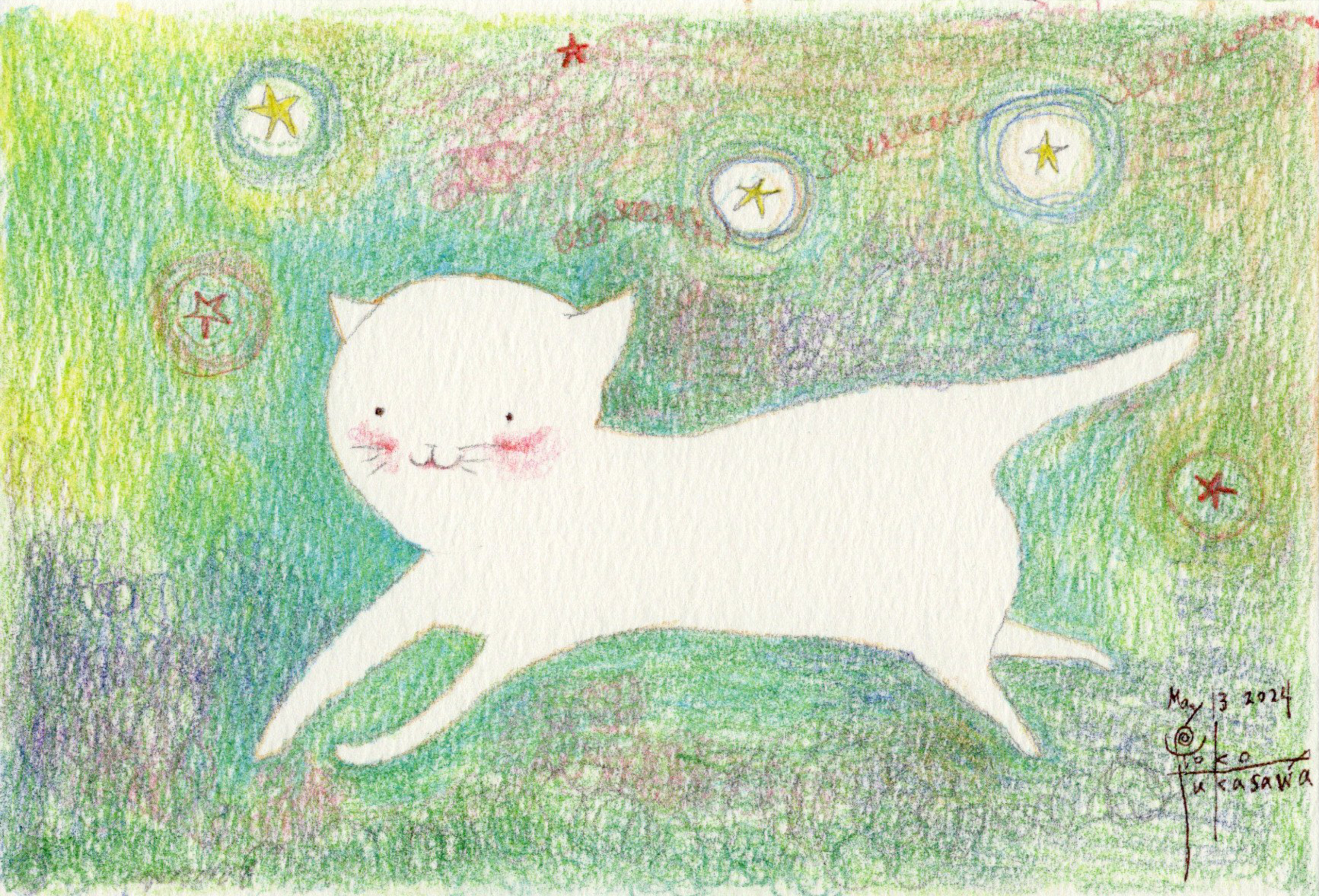 Yoko Fukasawa was born in 1982. 2001-Japan traditional craft department,Metal crafts major 2001-Volkswagen new Beetle - art contest The third place. 2002-TOKYO DOME - Tableware festival Fine work. 2017-And Schizophrenia has been revealed. Her paintings are outsider art. They are characterized by simple shapes and bright colors. She wants you to look at them and relax.