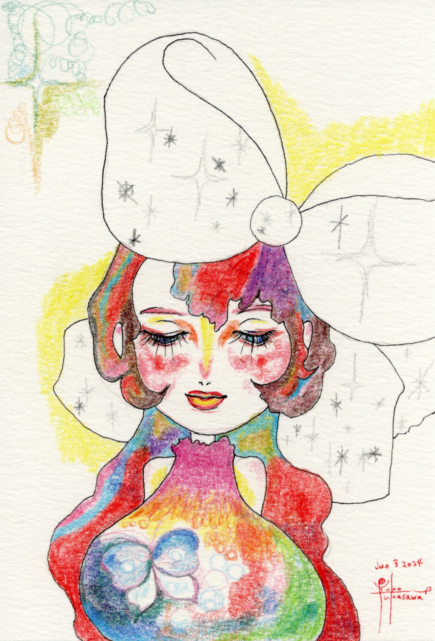 Yoko Fukasawa was born in 1982. 2001-Japan traditional craft department,Metal crafts major 2001-Volkswagen new Beetle - art contest The third place. 2002-TOKYO DOME - Tableware festival Fine work. 2017-And Schizophrenia has been revealed. Her paintings are outsider art. They are characterized by simple shapes and bright colors. She wants you to look at them and relax.