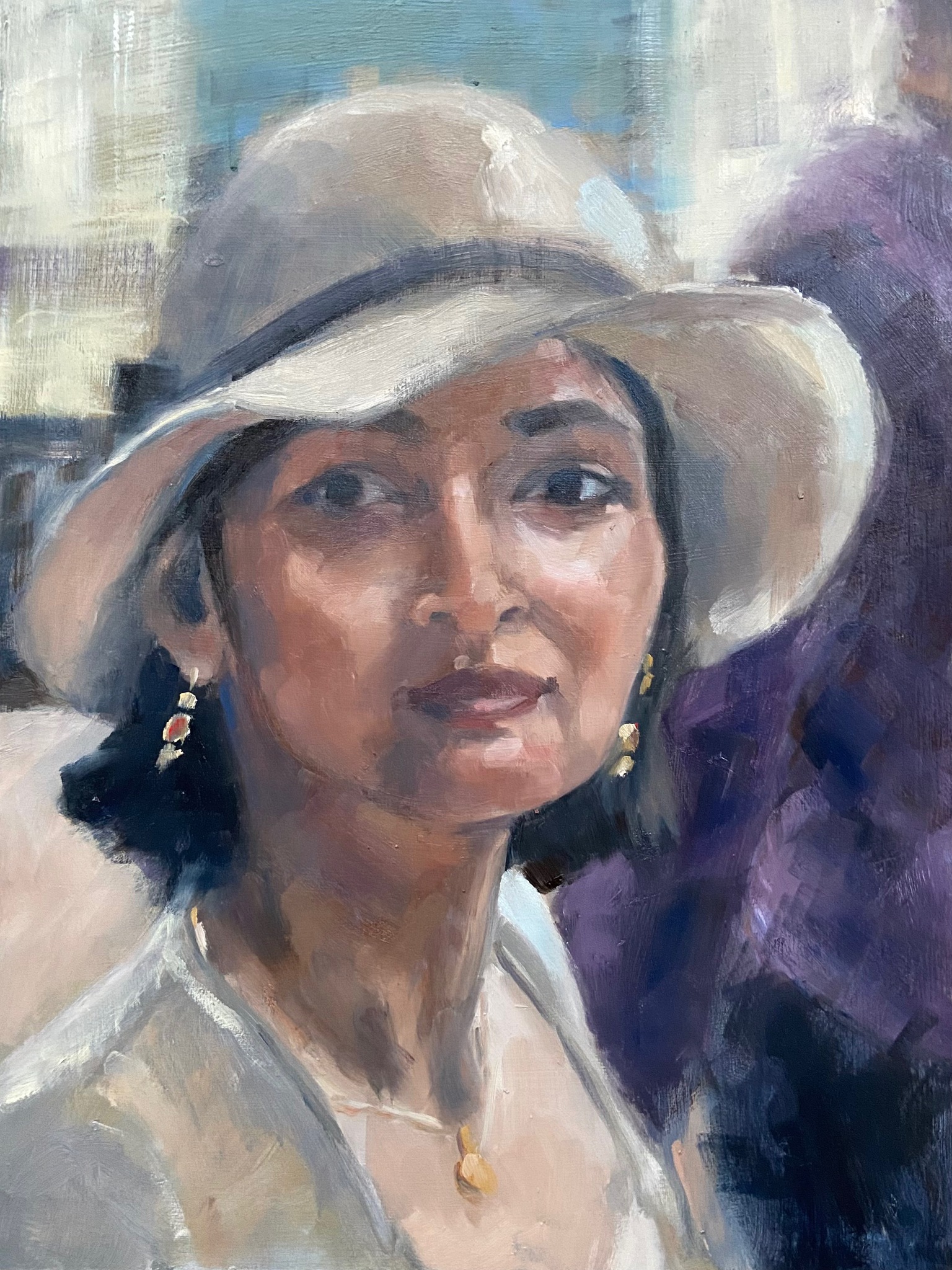 Portret Vrouw Olieverf Hoed