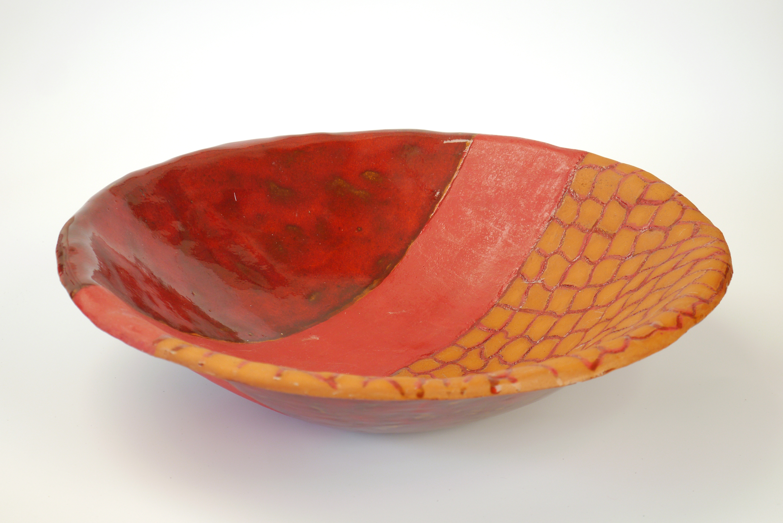 Grote schaal roodoranje, rode klei op 1100 graden gestookt.