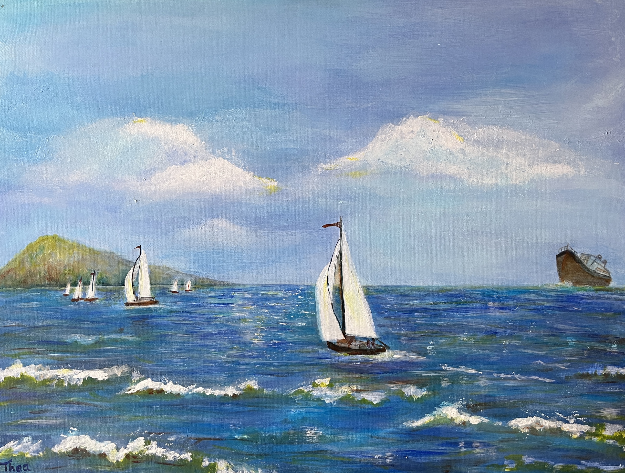 Op zee, acrylschilderij op canvas 80x60 cm