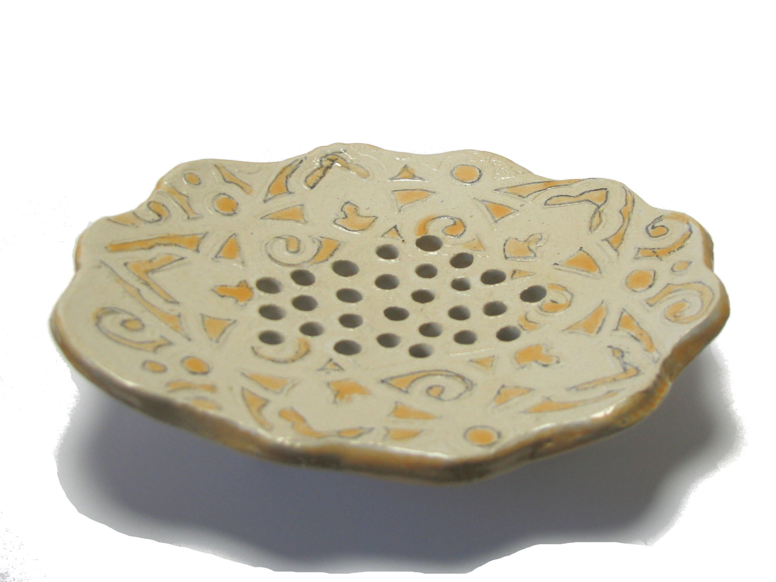 Zwart Klein Keramiek Lief Crème Cadeautje Oranjegeel Zeep Zeepschaaltje Motiefje