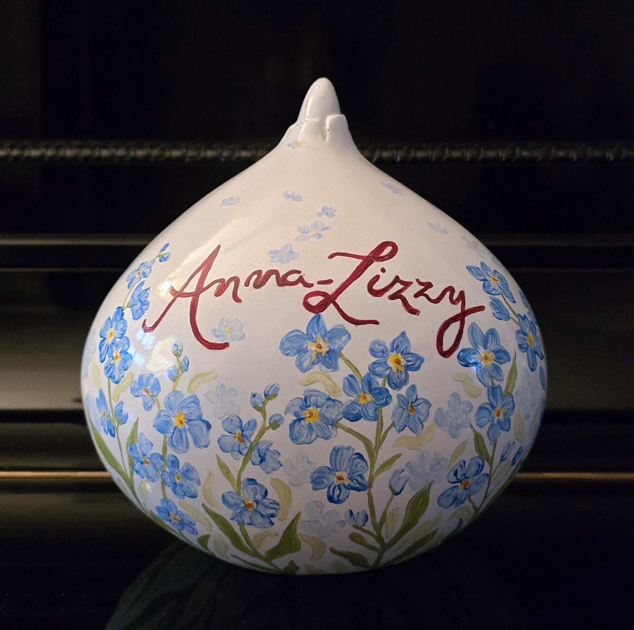 Deze minibol heb ik beschiderd in opdracht van Gildemeestersbollenstreek ter herinnering aan een sterrenkindje.