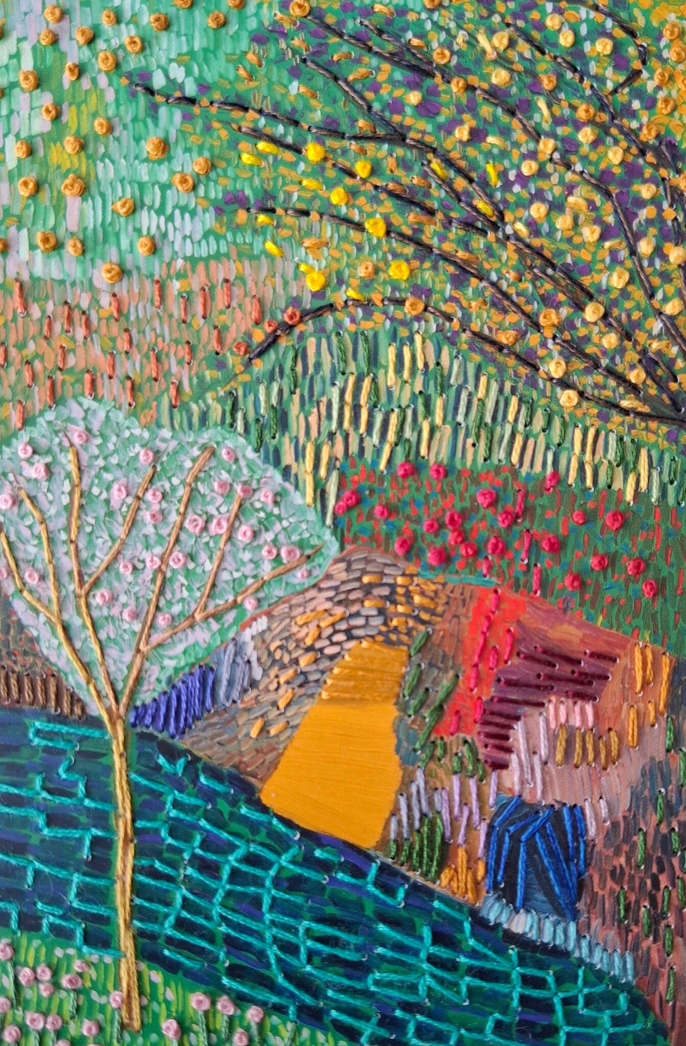 Het natuurlijke landschap en de stedelijke omgeving blijven voor mij de grootste inspiratie. Ik interpreteer wat ik zie en vertaal dat in inkt en aquarelverf op papier en in garens op doek. I