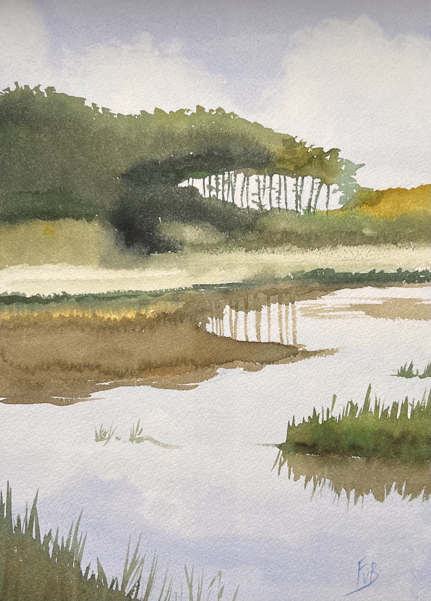 Aquarel Bossen Weiden Waterpartijen Aalter
