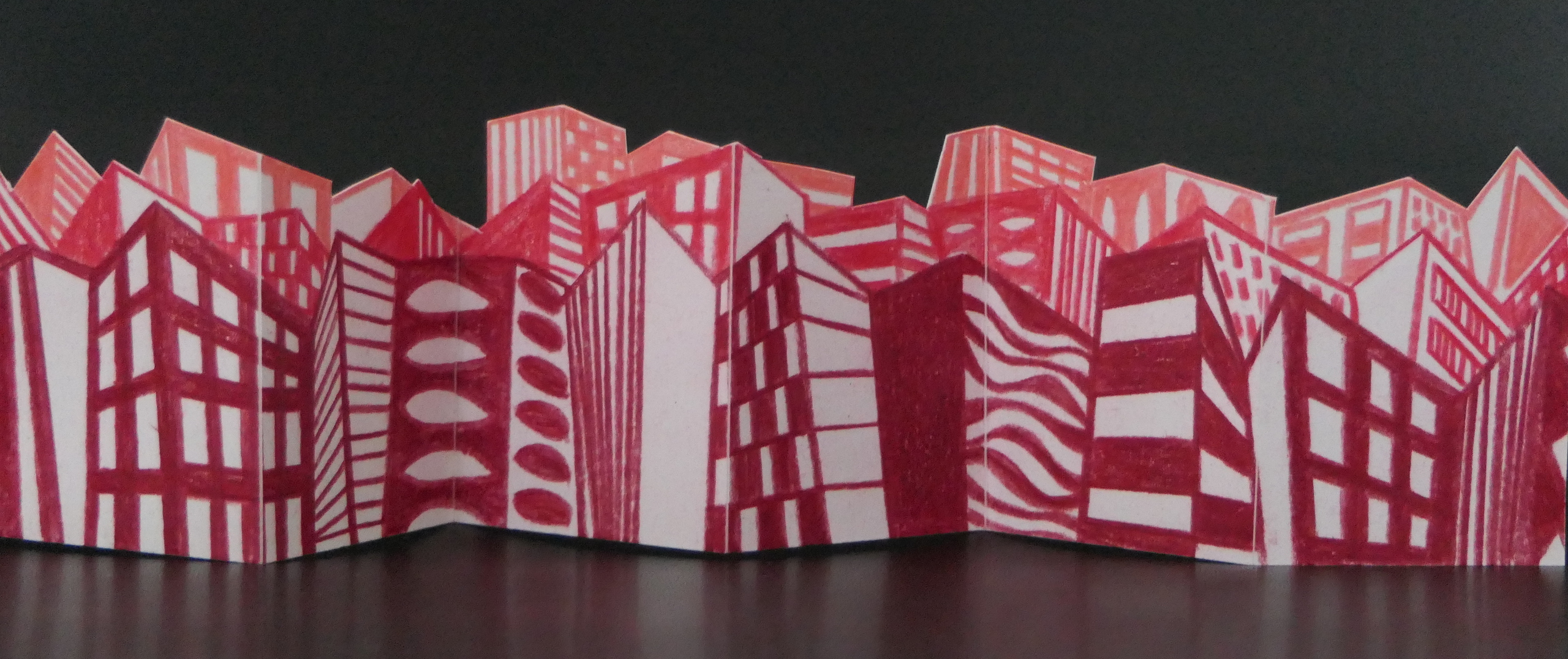 Rood Papier Serie Roze Architectuur Vouwen Gebouwen Leporello Harmonicaboekje
