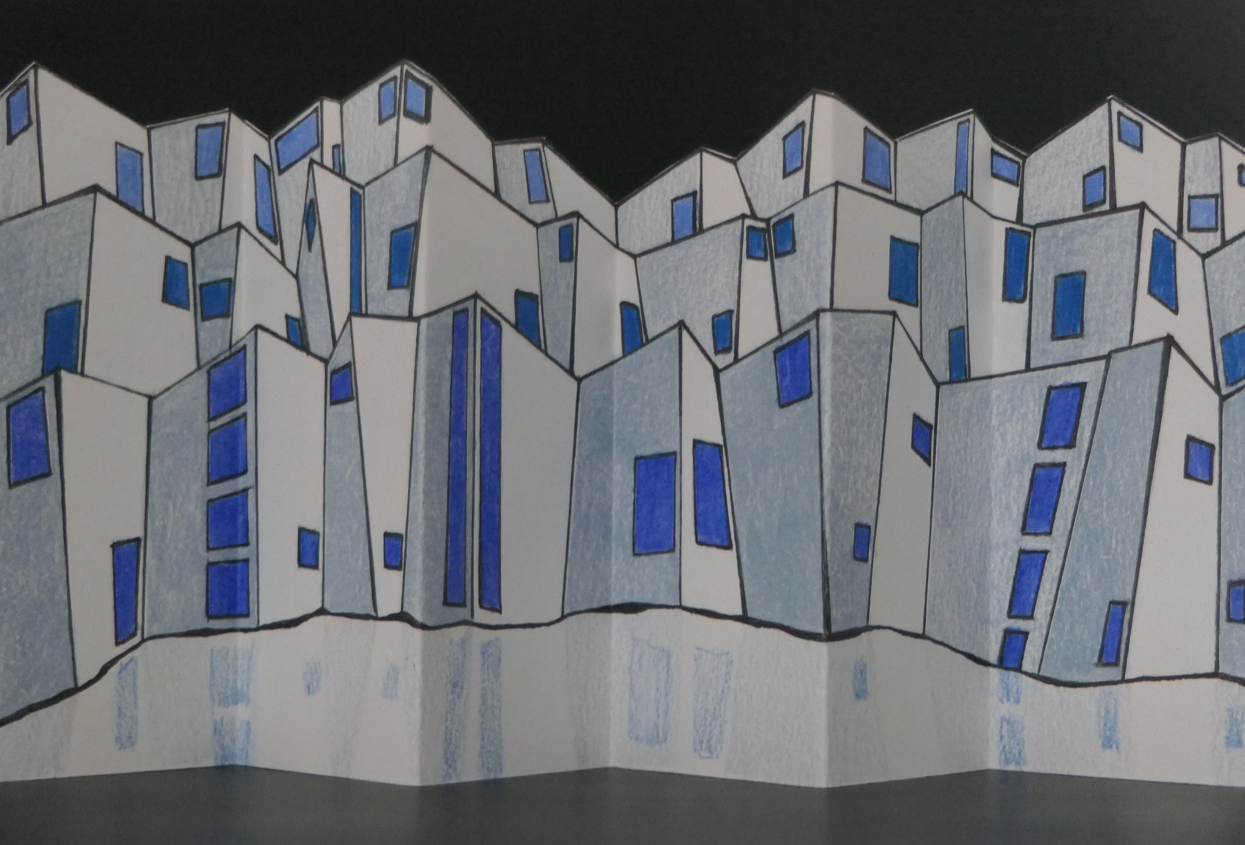 Wit Blauw Architectuur Kleur Gebouwen Uitgesneden Wonen Leporello Harmonicaboekje