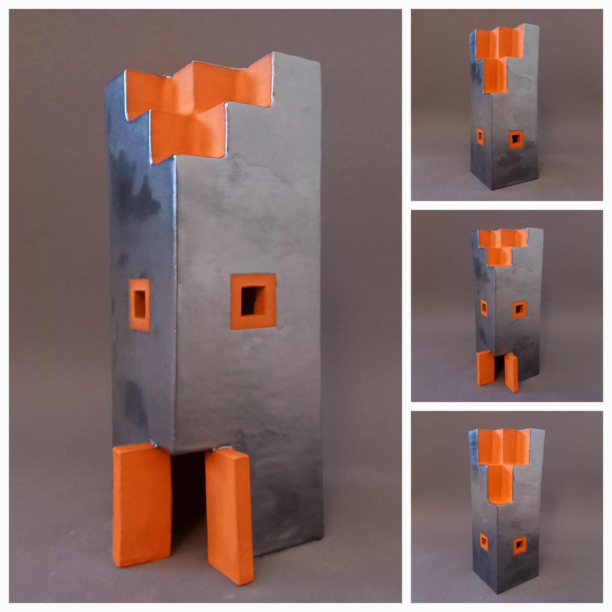 Getrapte toren. Rode klei en Ziverzwart glazuur