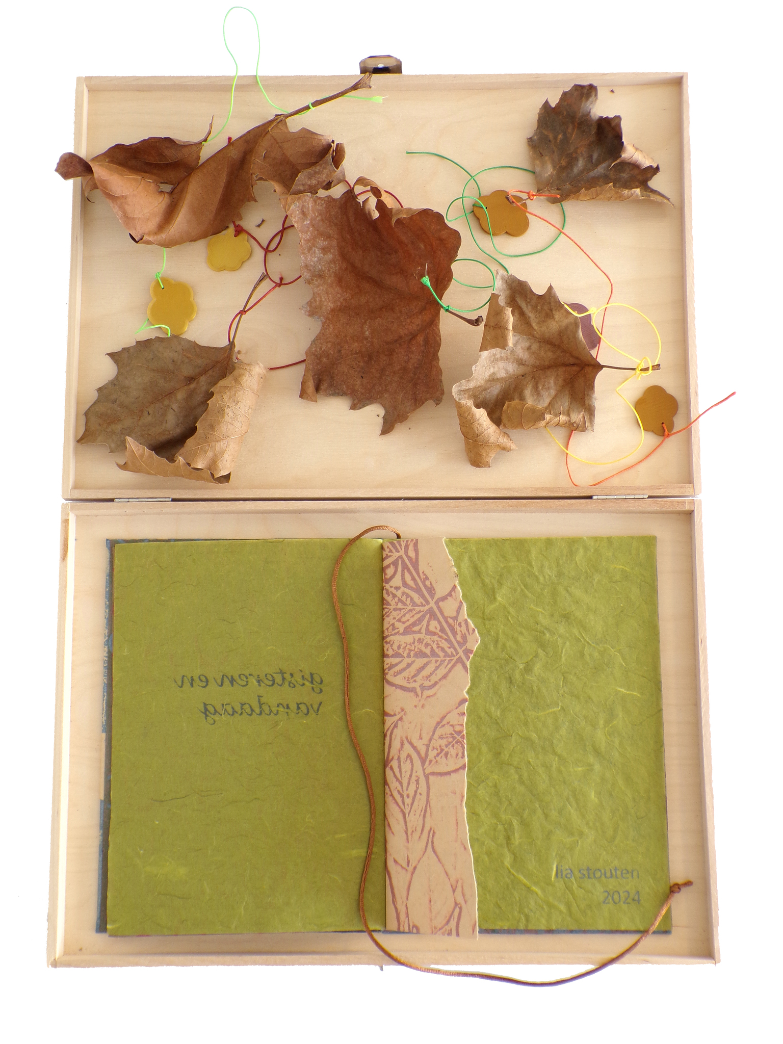 Lia Stouten maakt grafiek, installaties en boeken. Het werk is poetisch en ligt dichtbij de universele taal van de mens.