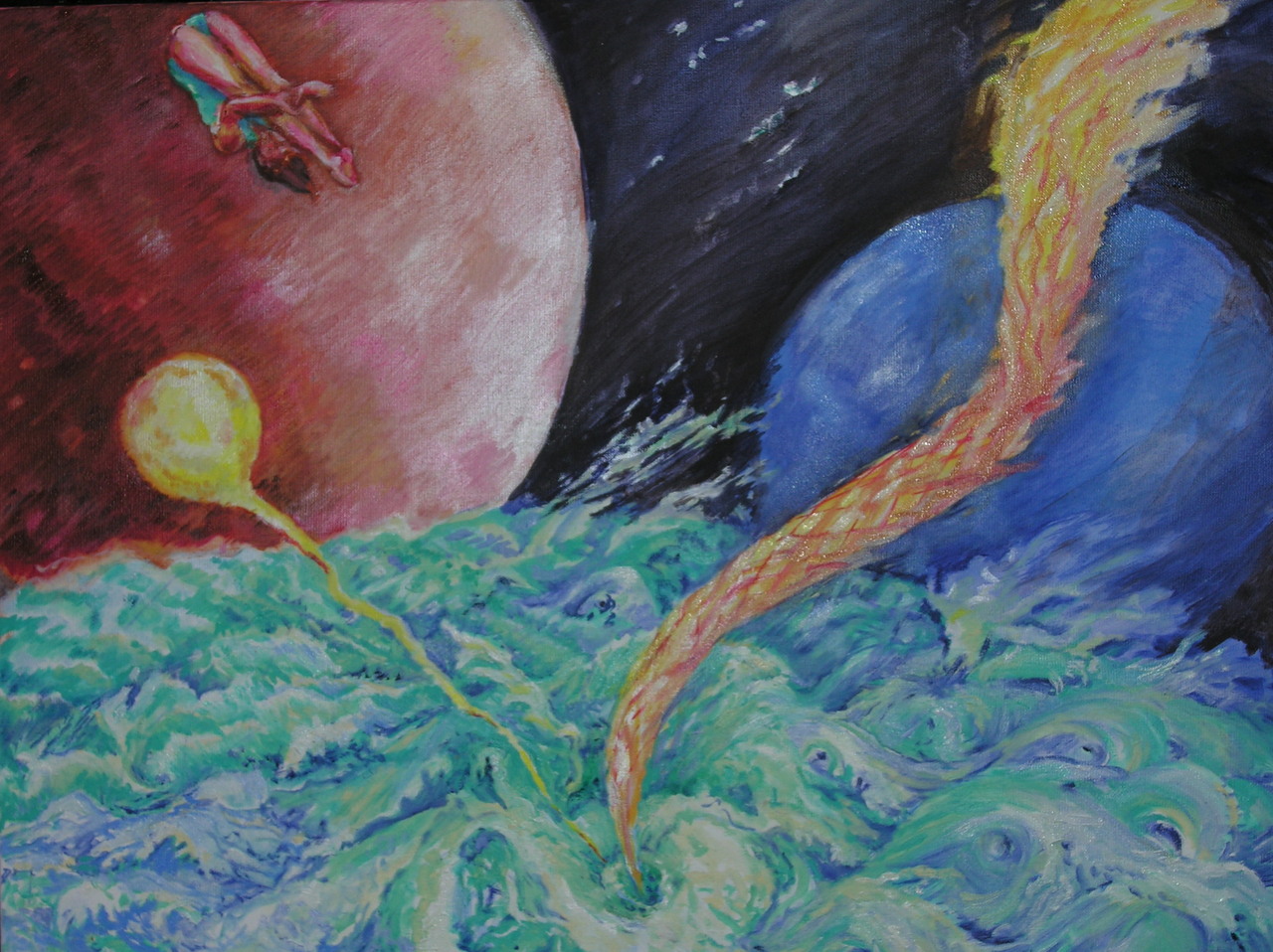 Hangende hemellichamen en kolkende neutronensterren. Gasreuzen en spuitende pulsars. Nooit komen ze zo dicht bij elkaar voor. Graag neem ik een duik in een wereld, die zou kunnen bestaan, vooral in mijn eigen fantasie