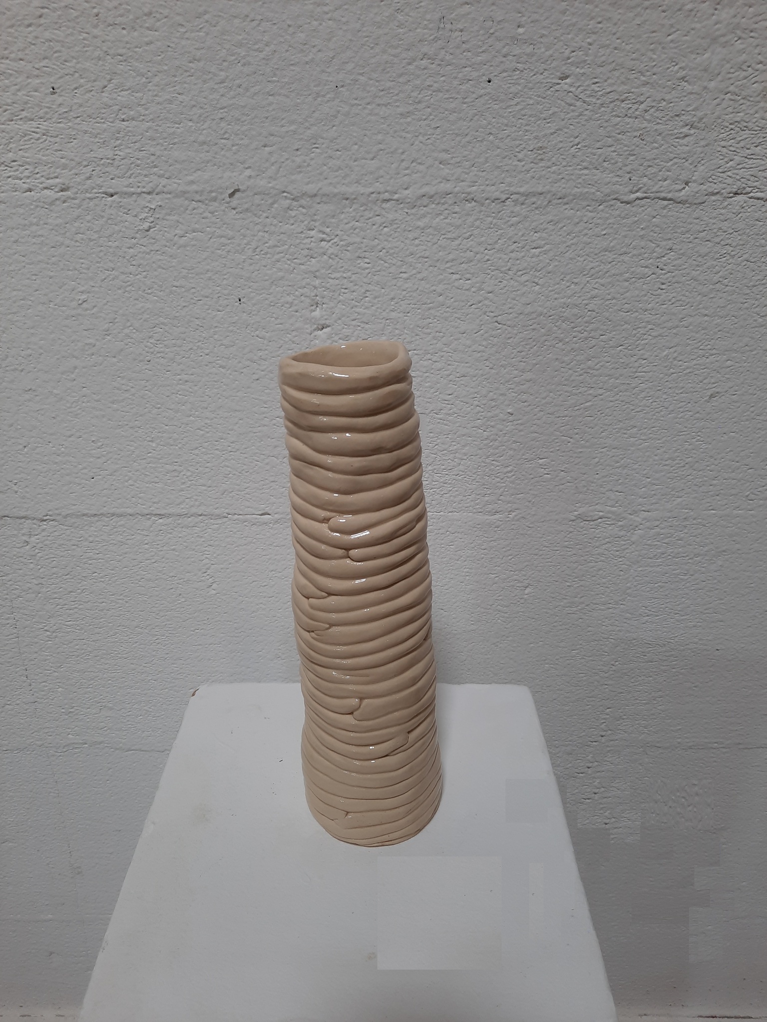100-Vazen-project – Aardewerk, geglazuurd - proces onderzoek - Alle vazen zijn handgevormd, opgebouwd uit ringen. De vazen zijn cilindervormig en minimaal 30 cm hoog. De vazen lijken elk een eigen karakter te hebben. Hoe verhouden ze zich tot elkaar en tot de ruimte waar ze staan?