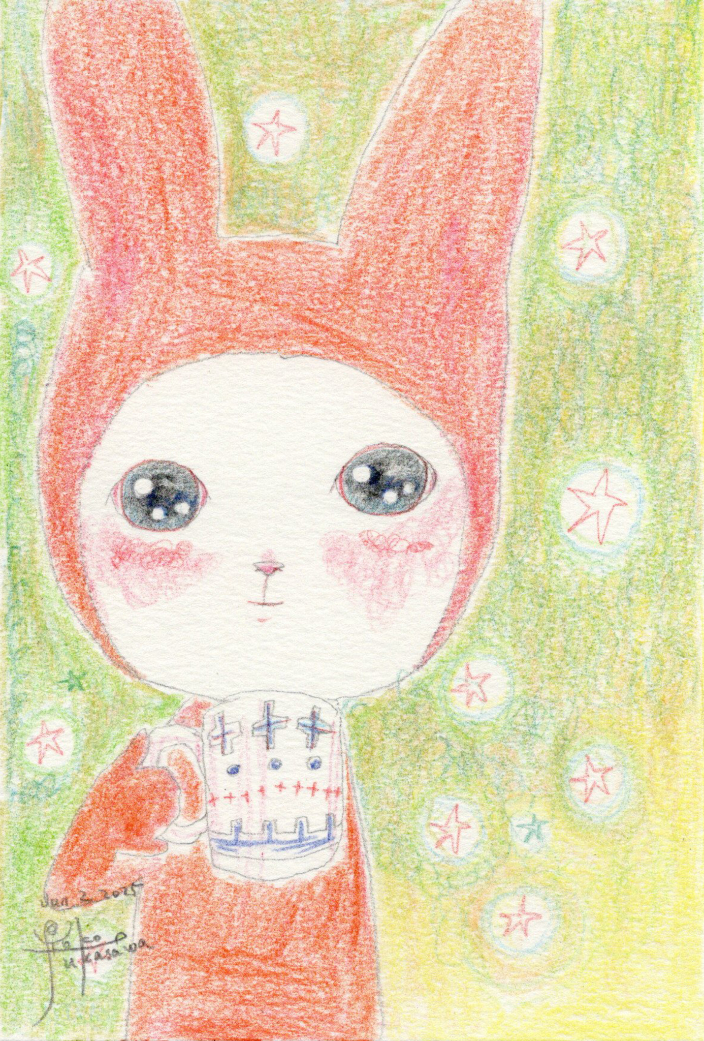 Yoko Fukasawa was born in 1982. 2001-Japan traditional craft department,Metal crafts major 2001-Volkswagen new Beetle - art contest The third place. 2002-TOKYO DOME - Tableware festival Fine work. 2017-And Schizophrenia has been revealed. Her paintings are outsider art. They are characterized by simple shapes and bright colors. She wants you to look at them and relax.