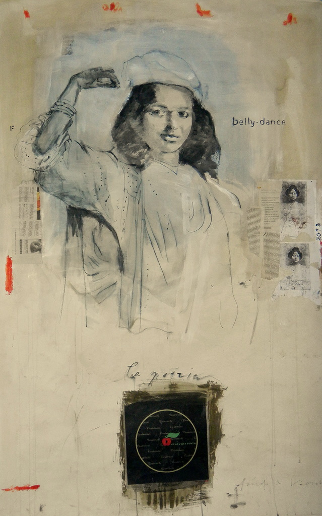 Ik woon en werk in Noord Italie,in het bergdorp Garzeno boven het Como-meer. Mijn schilderijen kenmerken zich door een combinatie van figuratie en abstractie. Grafische elementen, foto's, tekst,collages van stukken krant vormen een essentieel onderdeel van de totale compositie.