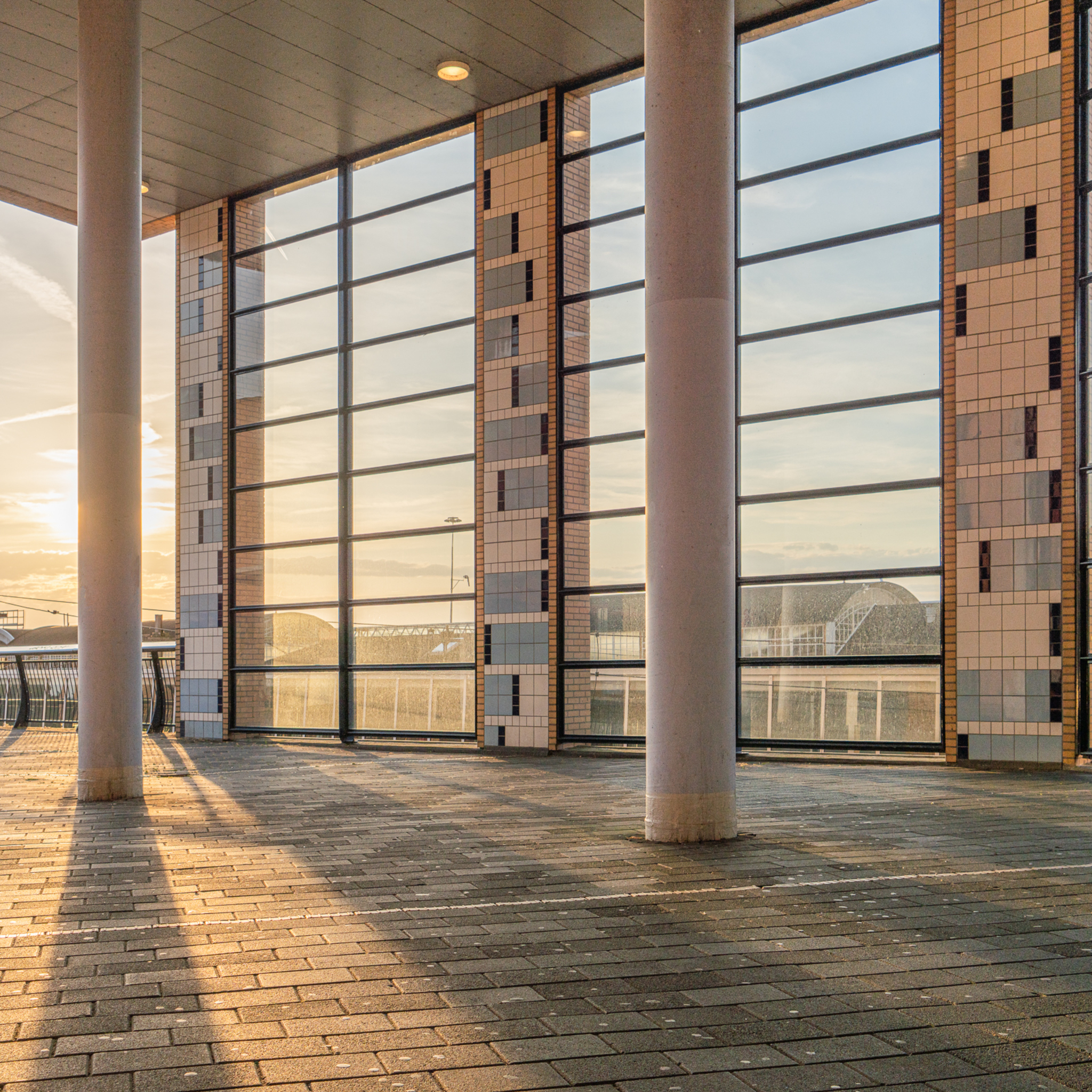 Strakke lijnen, geometrische vormen en ruimtelijkheid; deze modernistische kenmerken sieren de westelijke zijde van de stationsbebouwing bij station Amersfoort Centraal. De kolommen en pijlers benadrukken niet alleen de hoogte en weidsheid, maar brengen ook ruimte en licht. Ze creëren een ruime, uitnodigende onderdoorgang waar passanten zich vrij kunnen bewegen. De grote raampartij geeft een weids, panoramisch overzicht over het stationsgebouw en de sporen, en nodigen uit tot nieuwe perspectieven en ontmoetingen. De repeterende kozijnen vormen een beschermend gordijn tegen wind, regen en andere weersinvloeden. Het kleurgebruik en het licht verzachten de harde stationsomgeving, en maken deze vriendelijk en toegankelijk. De zonnestralen spelen met de ruimte en stemmen optimistisch. In 1997 werd het nieuw stationsgebouw van Amersfoort Centraal, ontworpen door Jan van Belkum (Arcadis Architecten), in gebruik genomen. Het is volledig geïntegreerd met diverse kantoorgebouwen. De foto is van het uiteinde van de westelijke kantoorvleugel, waar architectuur en licht samenkomen.