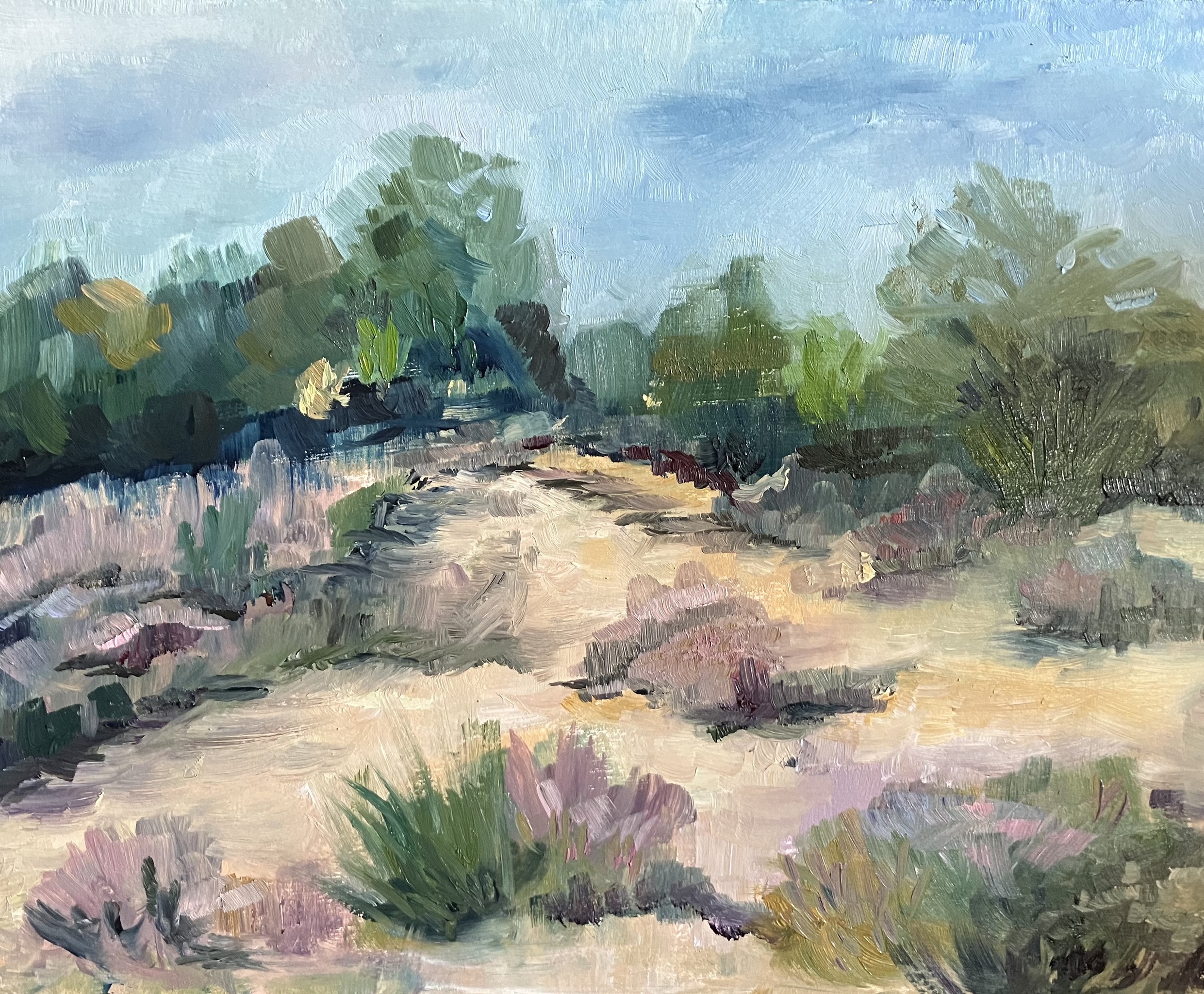 Landschap, impressies daarvan ,stille plekken waar ik graag was, af en toe een stilleven. Meestal in olieverf, soms aquarel. Kleur is waar ik van hou.